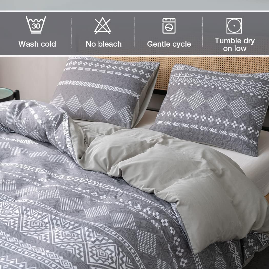 - Lekesky Bohemian-Bettwäsche 200 x 200 cm, 3-teiliger Bettbezug mit Reissverschluss und 2 Kissenbezüge 80 x 80 cm, Dunkelgrau