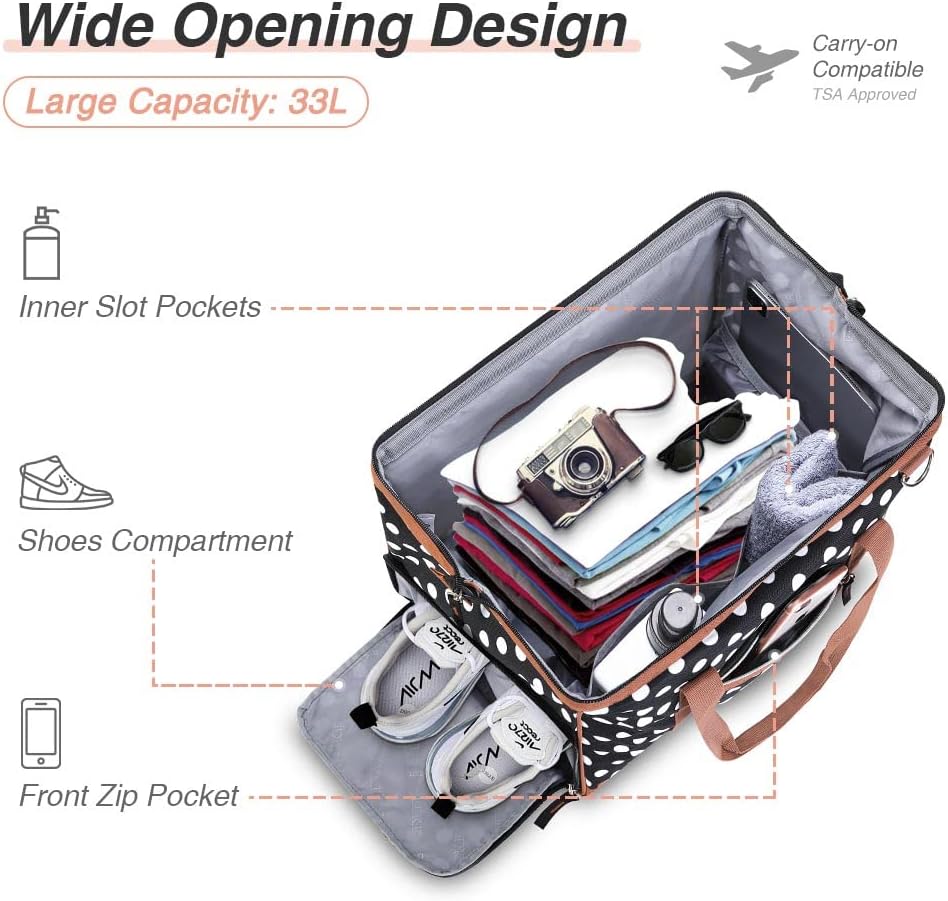- [Mittelgross Reisetasche für Damen] 42 x 33 x 24 cm / 33L Volumen. Perfekt für kurze Reisen von 2-3 Tagen, Oder als Sporttasche, Krankenhaustasche und Strandtasche verwenden