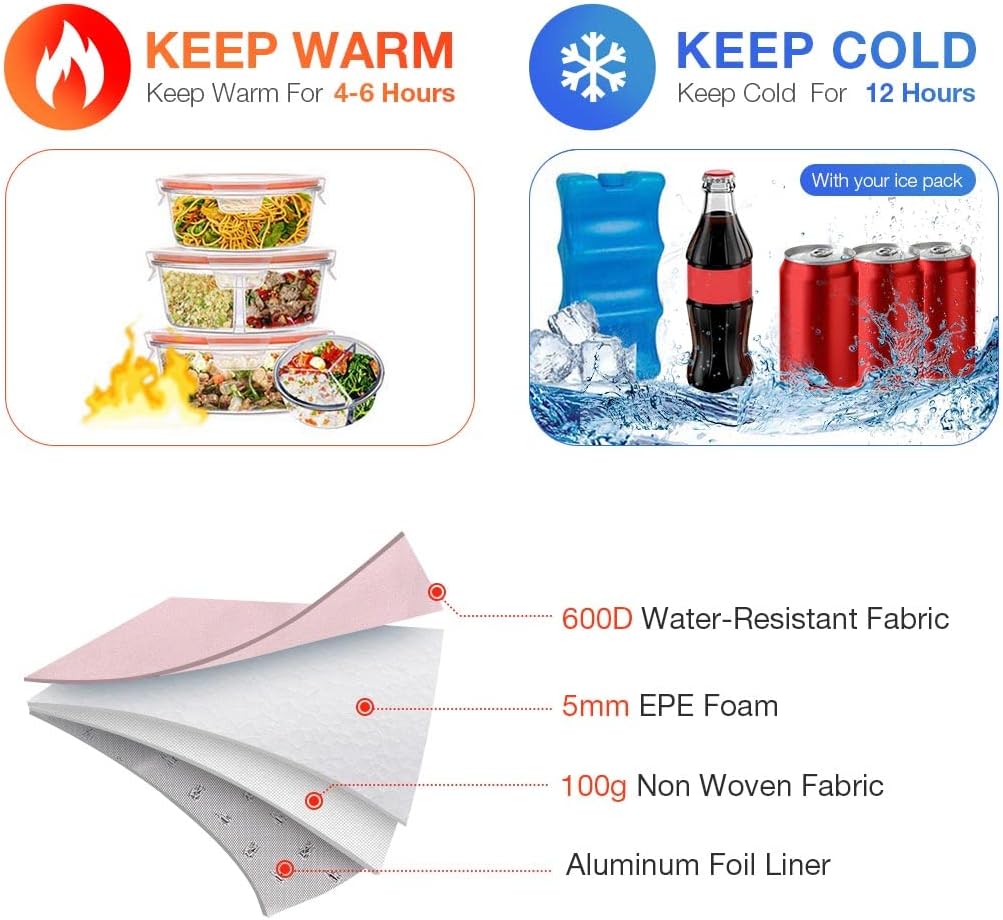 - Langfristige Erhaltung:Upgraded lekesky kühltasche ist aus 5 Schichten Material für eine bessere Isolierung und Kältekonservierung gemacht. Es hält warm/frisch für 6 Stunden, hält kalt für 12-14 Stunden mit Kühlakkus (Kühlakkus sind nicht