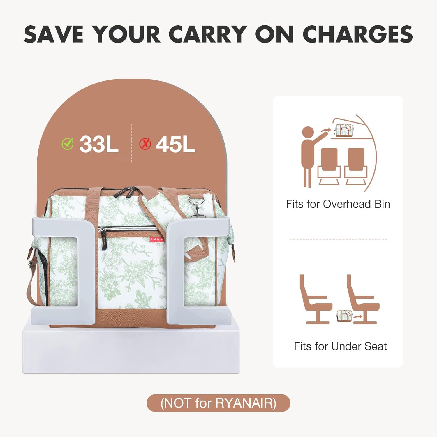 - Mittelgross Reisetasche für Damen: 42 x 33 x 24 cm / 33L Volumen. Perfekt für kurze Reisen von 2-3 Tagen, Oder als Sporttasche, Krankenhaustasche und Strandtasche verwenden