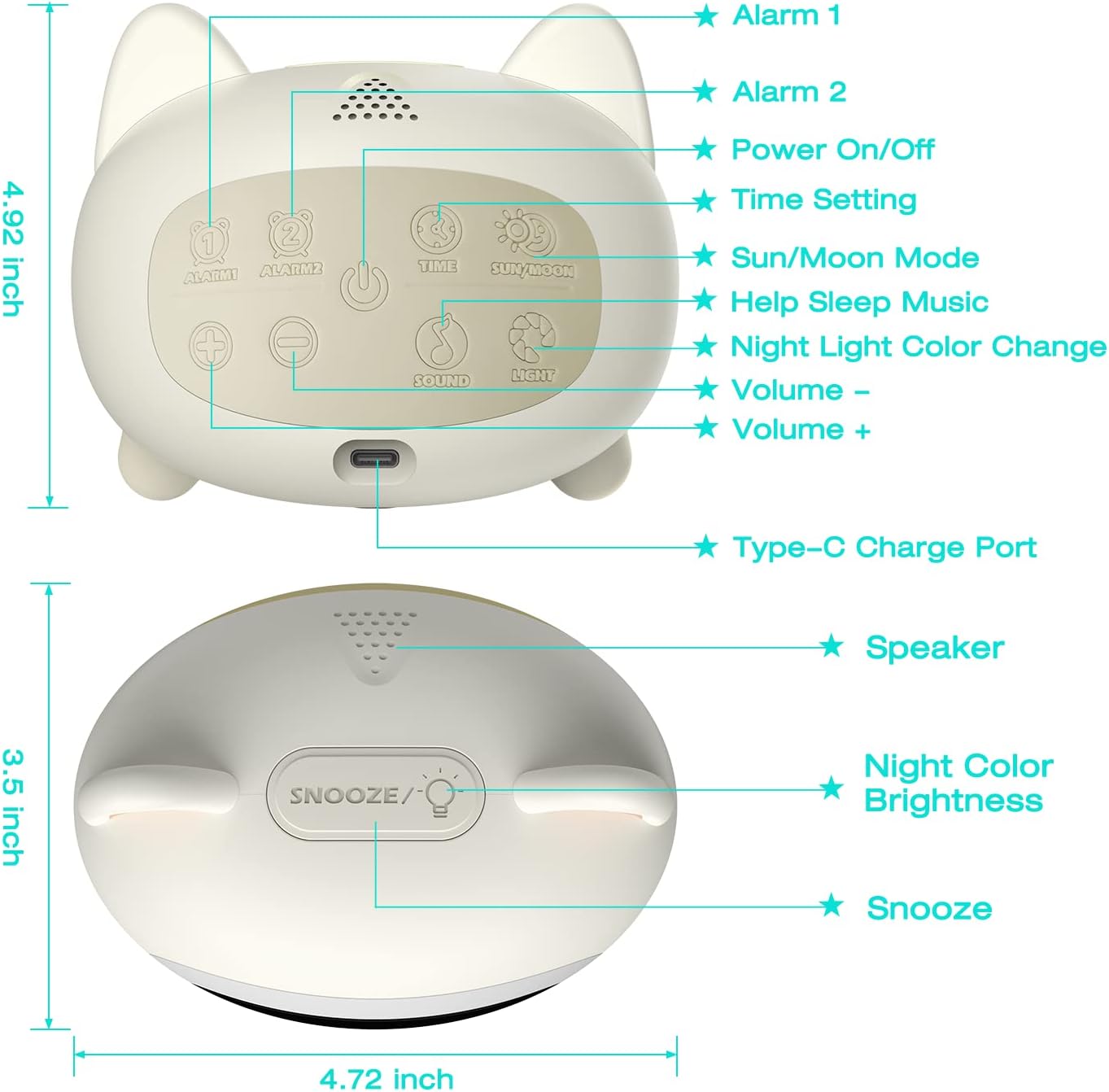 - ⏰✅【Okay to Wake Uhr für Kinder】 Hergestellt aus kindersicherem ABS-Material. Der eingebaute Akku des Weckweckers mit einem DC-Anschluss zum Aufladen, eine einfach zu bedienende entsprechende Taste zum Einstellen von Zeit, Alarm, Licht und