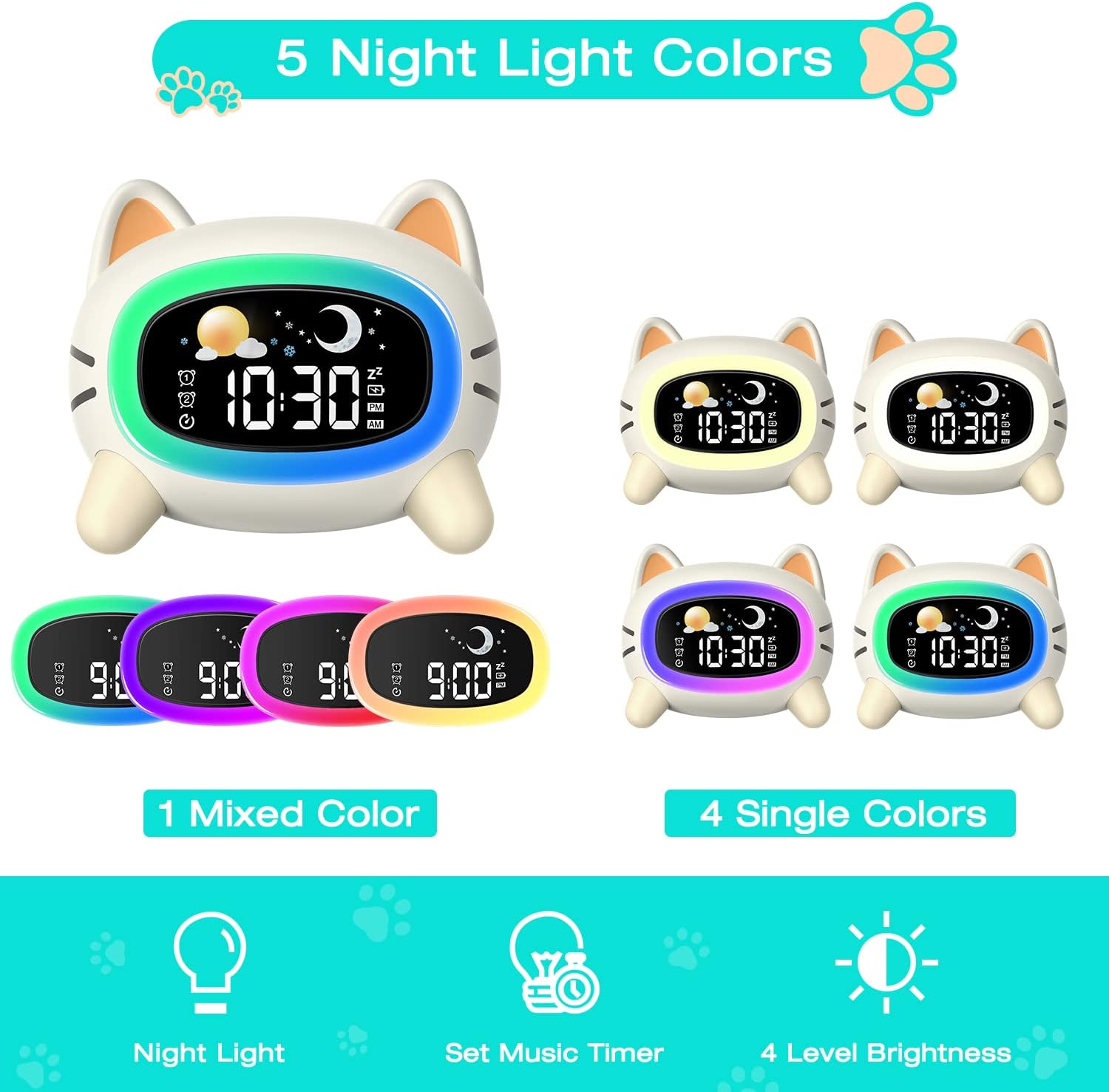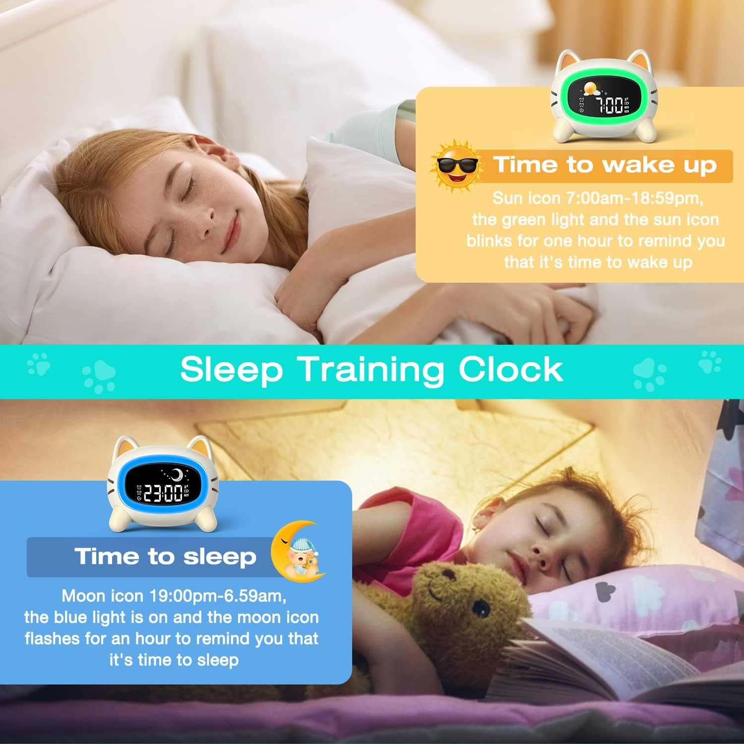 - ⏰👨👩👧【Kinder Schlaftrainer Wecker】 Der Kinderwecker für Mädchen und Jungen hat eine niedliche Katzenform, sodass Kinder anhand von Farben und Symbolen unterscheiden können, wann es Zeit ist, ins Bett zu gehen und wann sie aufstehen