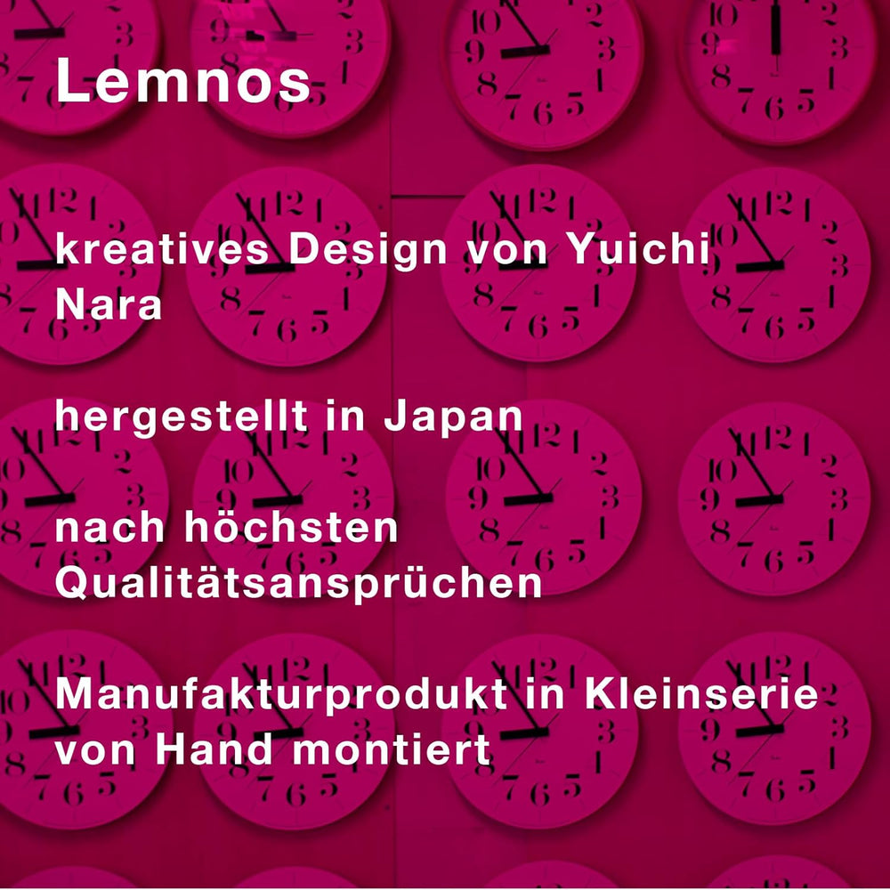 - QUALITÄT AUS JAPAN – Sie erhalten eine Wanduhr analog des japanischen Weltmarktführers für Grossuhren – Lemnos. In langjähriger Zusammenarbeit mit renommierten Designern entstehen hochwertige Uhren.