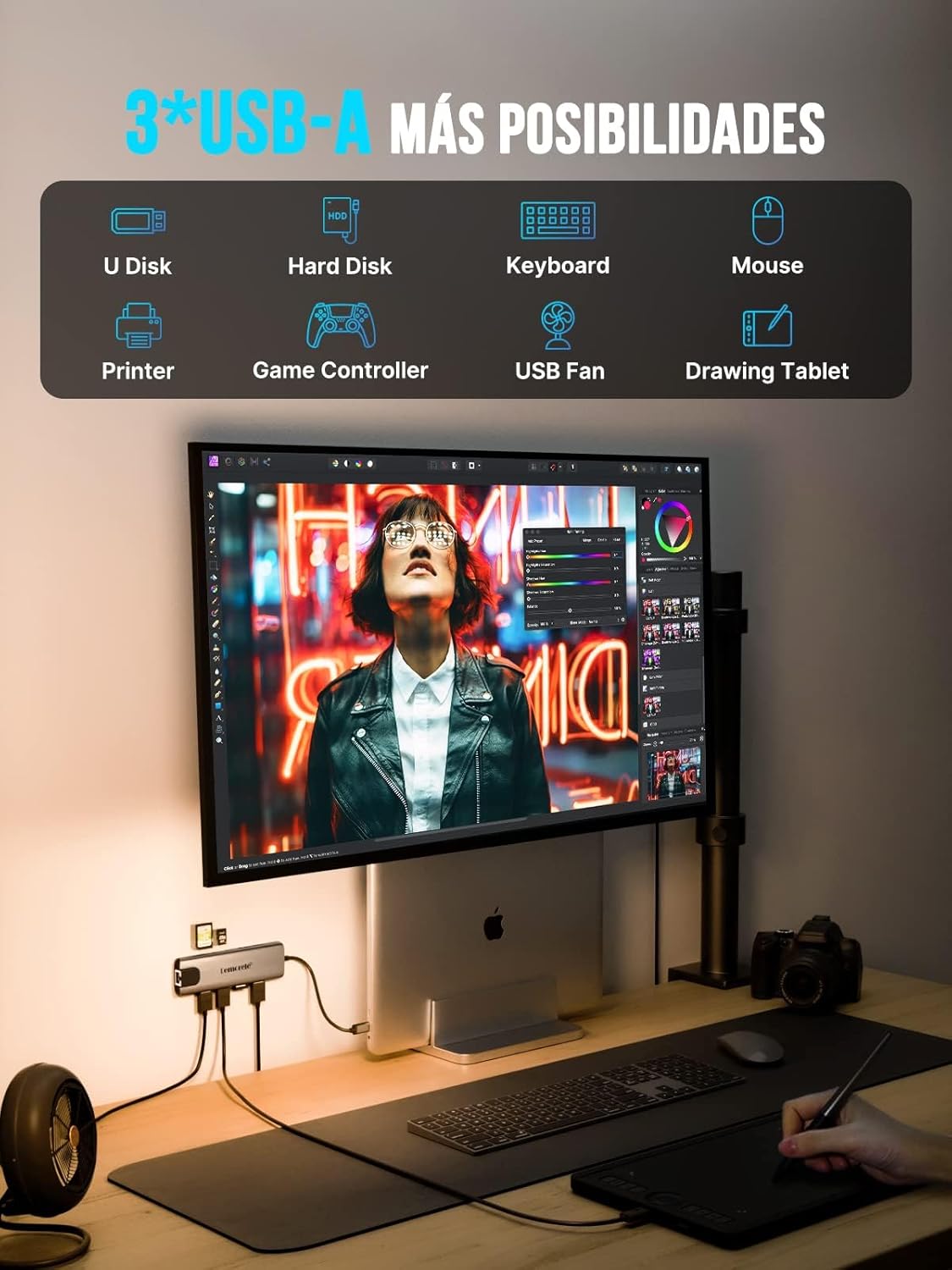 - 【Plug and Play - Starke Kühlung - Praktische Grösse】: Lemorele USB C HUb kann direkt ohne Treiber, Programme oder Software verwendet werden. Der intelligente High-Level-Mikrochip des Unternehmens und verschiedene Schutzsysteme zur Vermeidung von