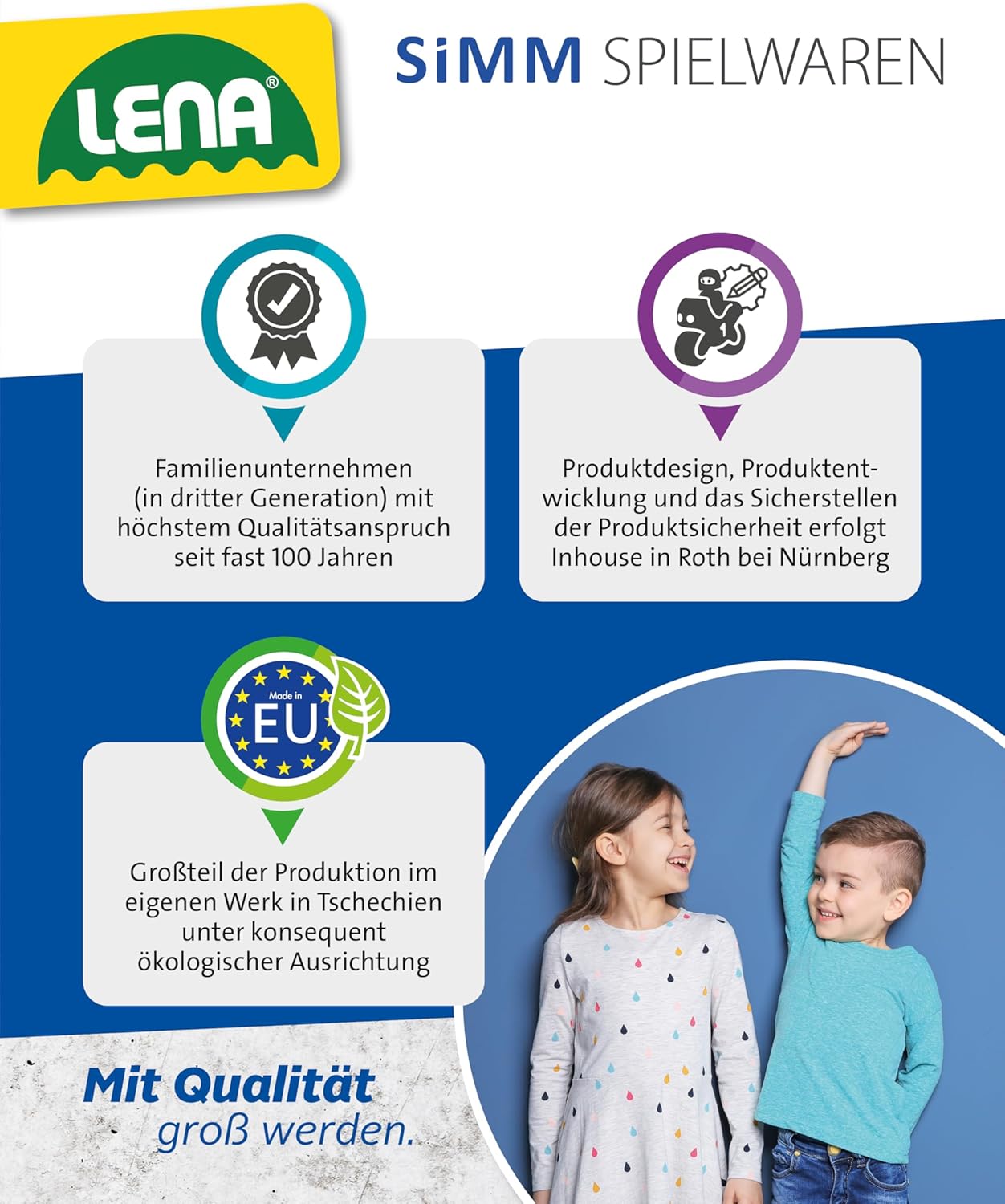 - Für Kinder ab 3 Jahren geeignet. Hergestellt in der EU. LENA Markenqualität. TÜV zertifiziert! Entdecken Sie auch die vielen anderen "Starke Riesen" der Marke LENA