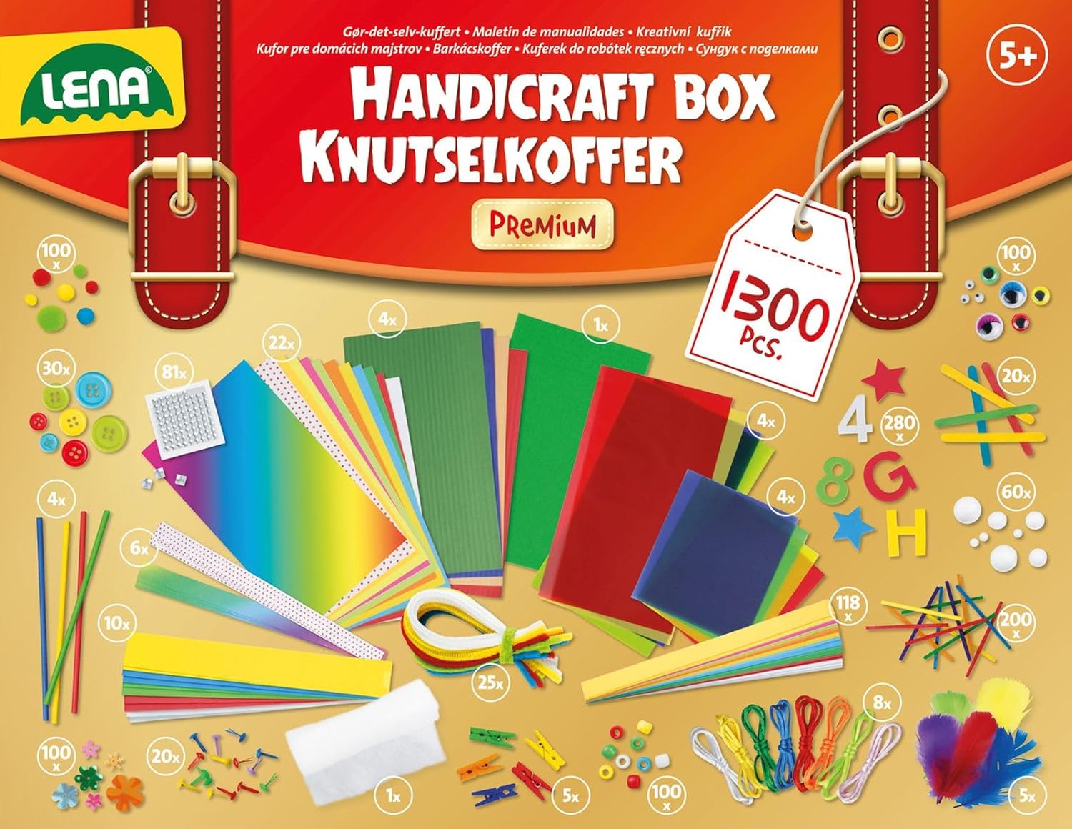- LENA Premium Bastelbedarfskoffer mit einer riesigen Auswahl von 1300 Zubehörteilen zum kreativen Basteln und selber gestalten von individuellen Kunstwerken & vielfältigen Bastelarbeiten