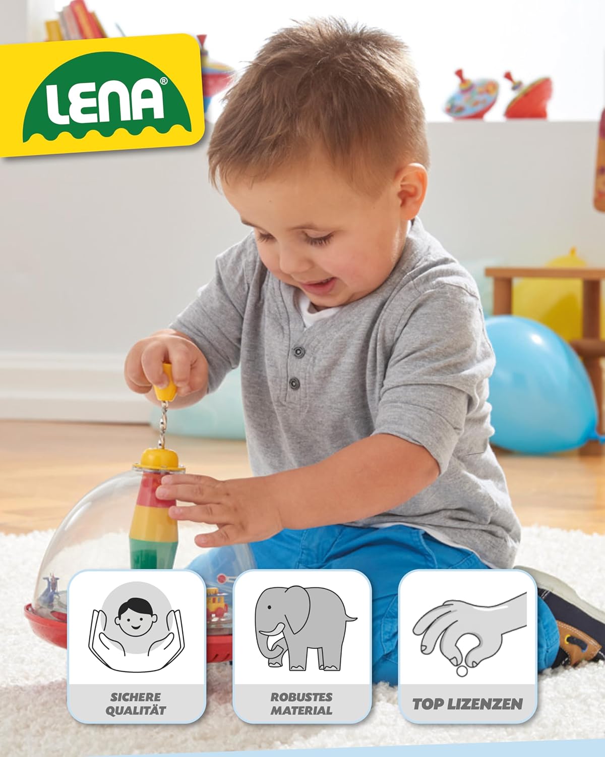 - Lena Panorama Kreisel aus Kunststoff mit einem Durchmesser von ca. 19 cm, ausgestattet mit einem Griffstück und Standfuss, Spielzeug - Brummkreisel Klassiker an die man sich mit Freude erinnert
