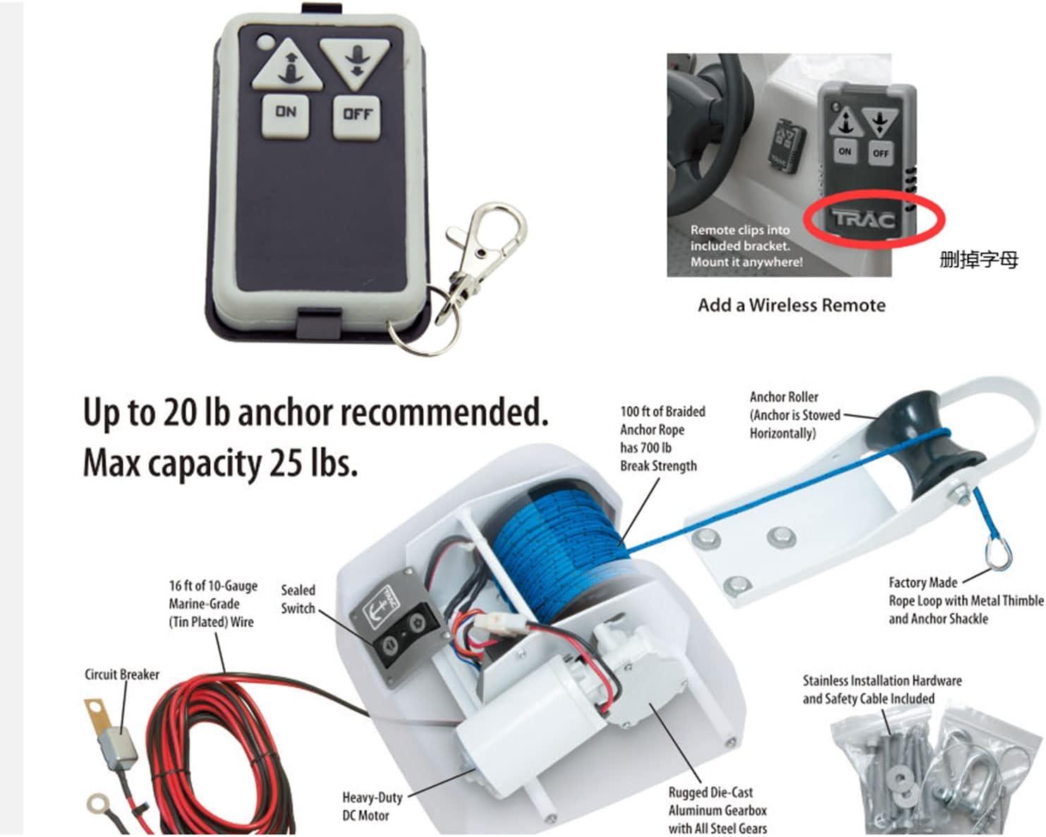 - đȘăSPEZIFIKATIONENăMaximale AnkerkapazitĂ€t: 25 lbs. Empfohlene AnkerkapazitĂ€t: 20-30 lbs(LĂ€ngere Produktlebensdauer),Typische BootslĂ€nge: bis zu 24âČ,Geschwindigkeit bis: 70ft/min (70 ft(21.3m) pro Minute, ohne Last,