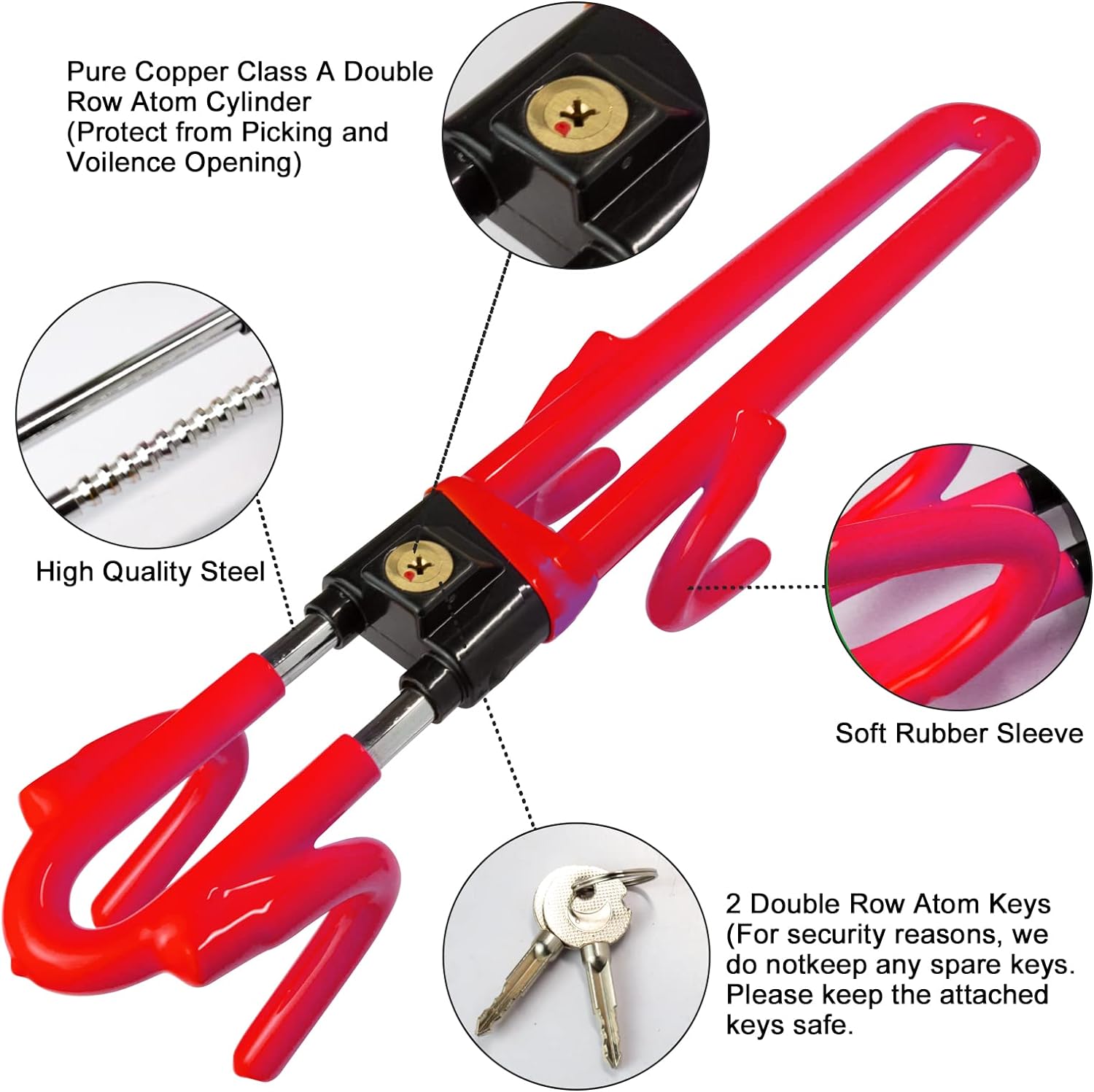 lenkradkralle Anti-Diebstahl Auto Lenkradschloss Radschloss Einziehbarer Schutz für Auto/LKW/SUV Rot