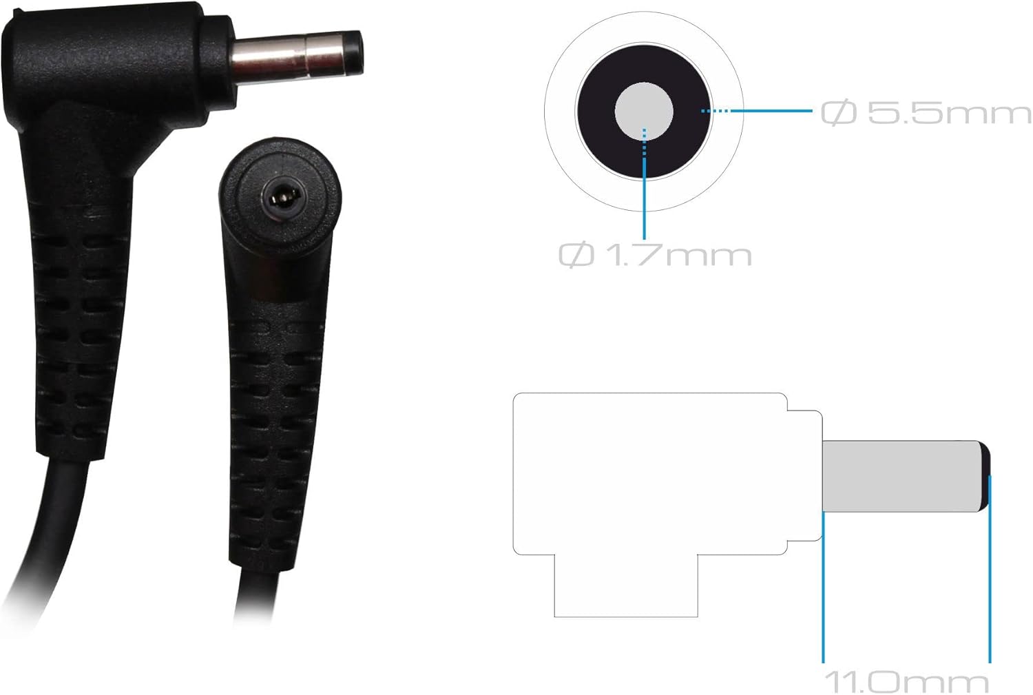 - Steckertyp: rund, Steckerform: 90° abgewinkelt, Aussendurchmesser des Steckers: 4,0 mm, Innendurchmesser des Steckers: 1,7 mm, Länge des Steckers: 11,0 mm, Stift im Stecker: Nein, Länge des Anschlusskabels vom Netzteil zum Notebook: ca. 1,95 m