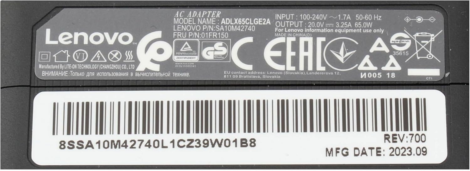 - Spannung: 20 Volt, Stomstärke: 3,25 Ampere, Ausgangsleistung: 65 Watt, Eingangsspannung: 100-240V / 50-60Hz, Energieeffizienz: VI