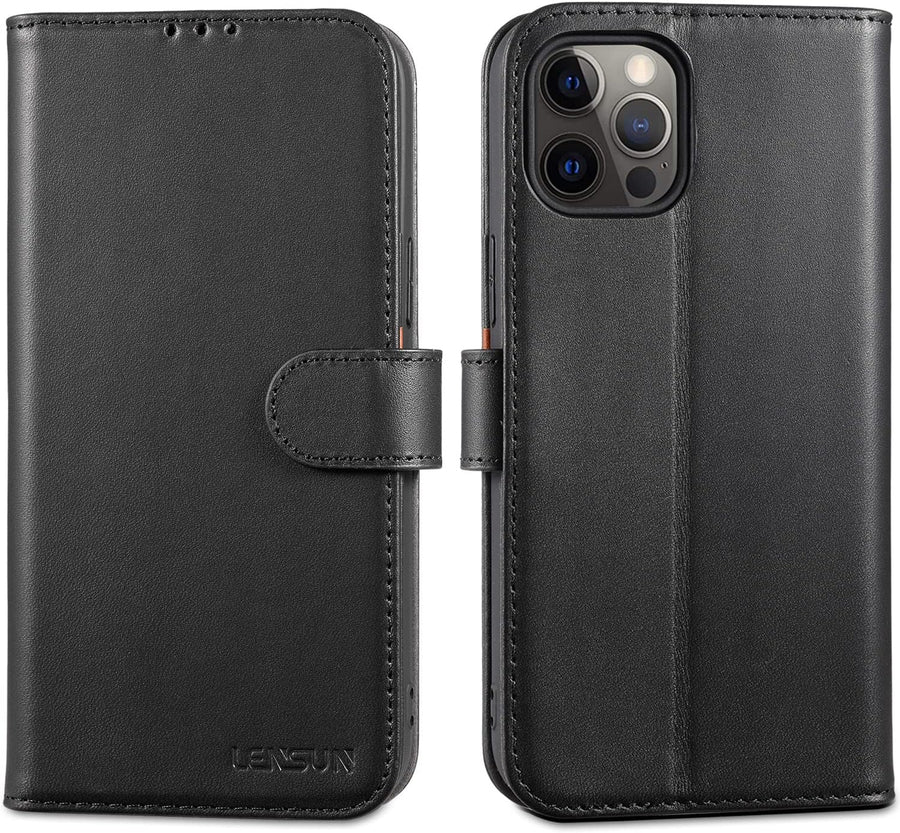 LENSUN Echtleder Hülle für iPhone 12 Pro Max, Handyhülle [Echtes Leder][Magnetverschluss][RFID Schut