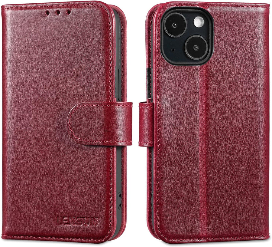 LENSUN Echtleder Hülle für iPhone 13 Mini, Handyhülle [Echtes Leder][Magnetverschluss][RFID Schutz]