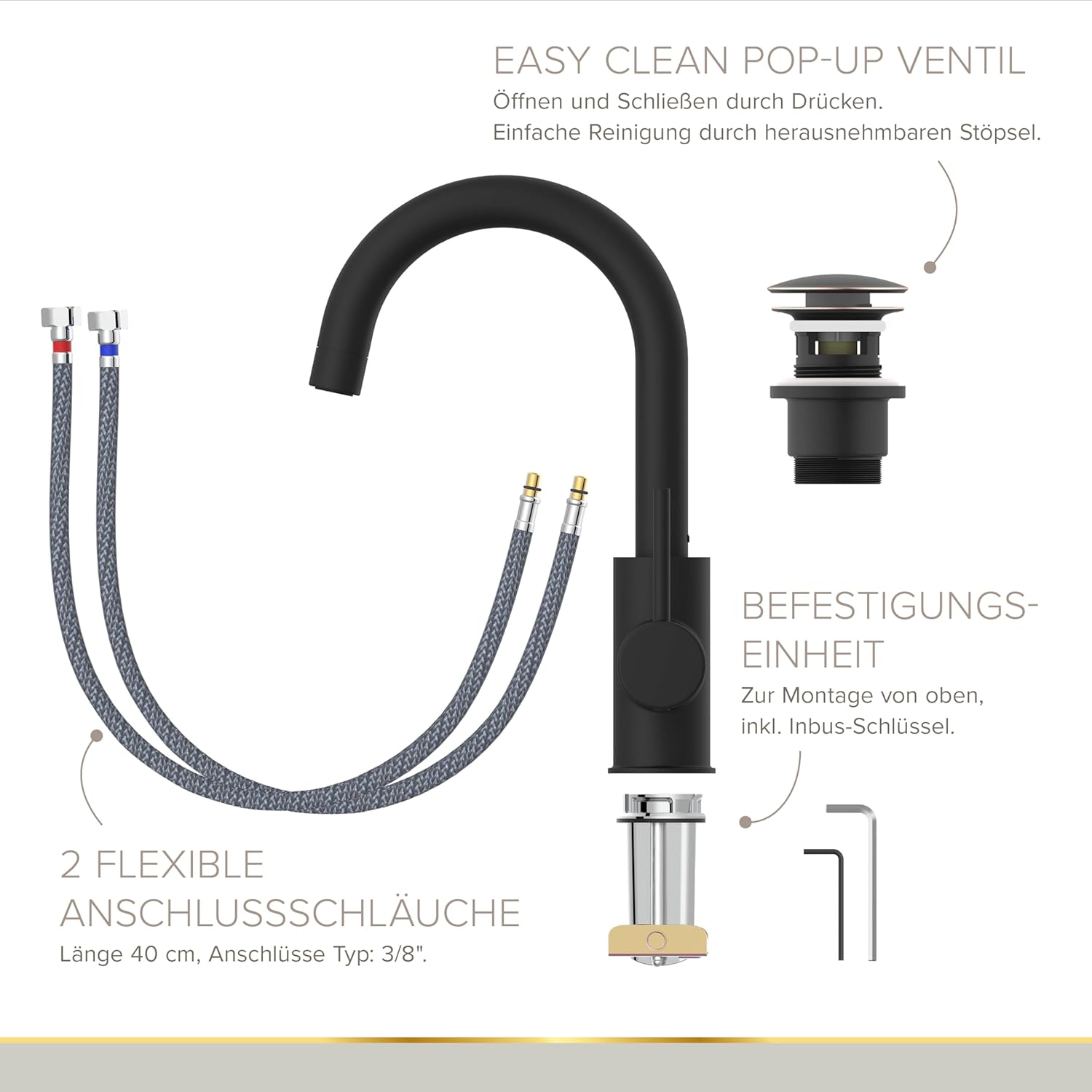- 2 flexible Anschlussschläuche 450 mm, G3/8