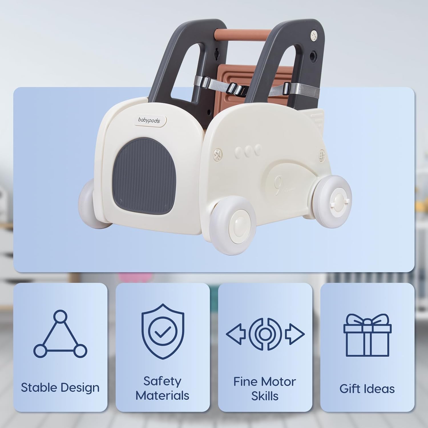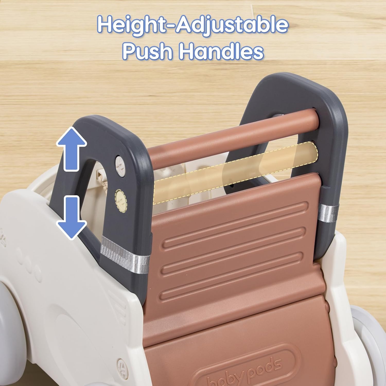 • Kontrollierbare Geschwindigkeit - Klappen Sie den Sitz nach oben, und er wird zu einem geräumigen Einkaufswagen! Sie können den Widerstand erhöhen, indem Sie Bücher oder Spielzeug in den Lauflernwagen legen, um die Geschwindigkeit des Babys beim