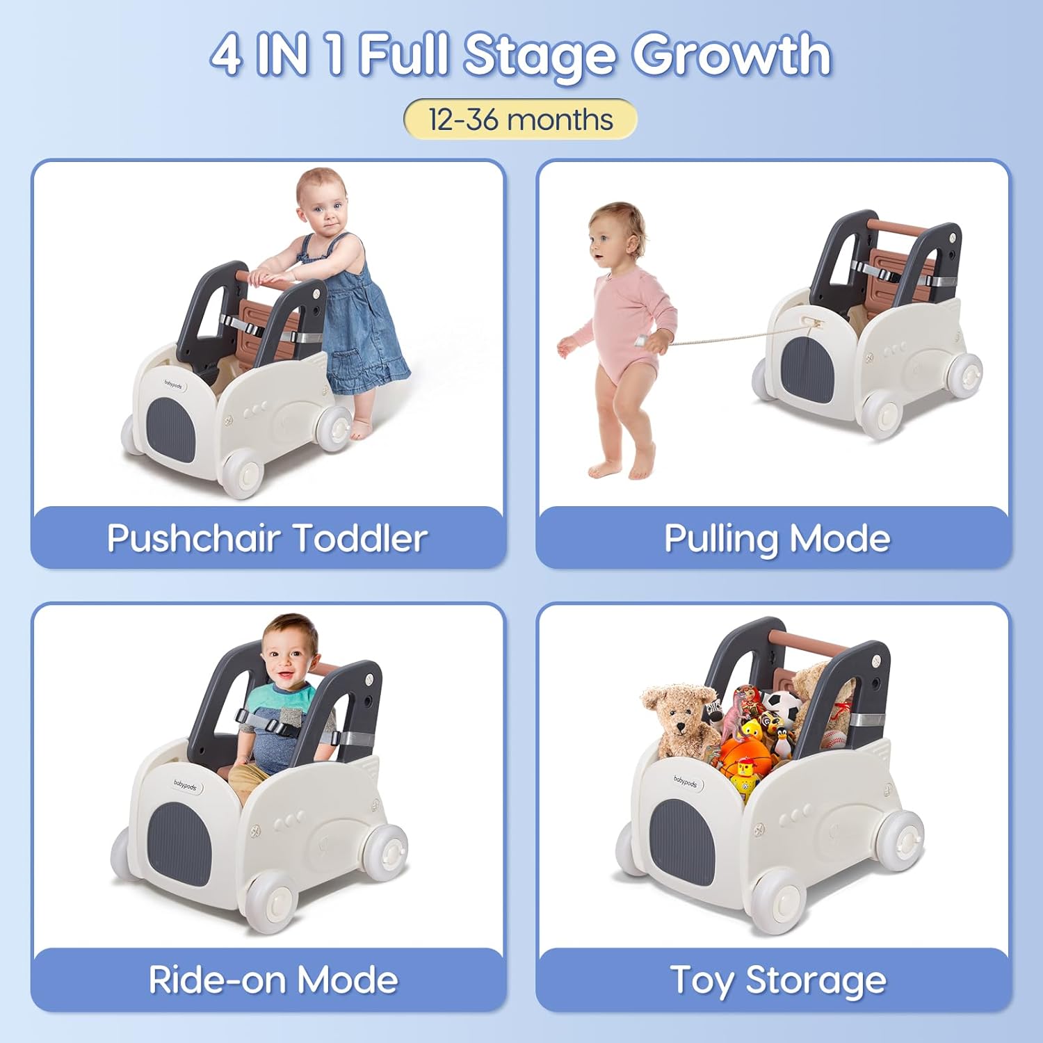 • 4-in-1 Multifunktional Lauflernhilfe - Diese Lauflernhilfe verfügt über 4 Funktionen zum Schieben, Ziehen, Fahren und Aufbewahren, die die Fantasie fördern, das Gleichgewicht verbessern und die Entwicklung der Bein- und Armmuskeln unterstützen. Sie