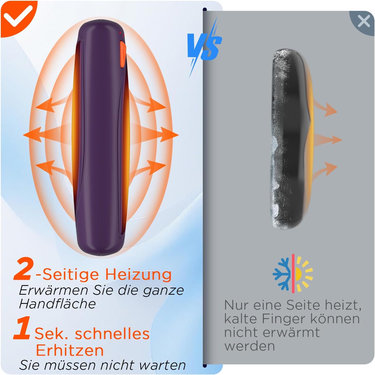 - Beidseitige Wärmeabgabe: Jeder elektrische Handwärmer im Lepwings 2er-Pack verfügt über eine beidseitige Heizfunktion, die das Problem der ungleichmässigen Wärmeverteilung bei herkömmlichen einseitigen Handwärmern löst. Die innovative