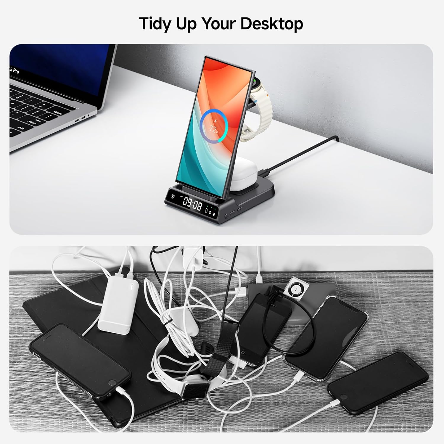 - ⚡【Qualitätssicherung für Kabelloses Laden】Mobiltelefon und Uhr werden gleichzeitig aufgeladen. Wenn die Uhr aus dem Ladebereich rutscht, können Sie das Telefon im Querformat aufladen. Für das beste Ladeerlebnis ist ein QC 3.0 Adapter (im