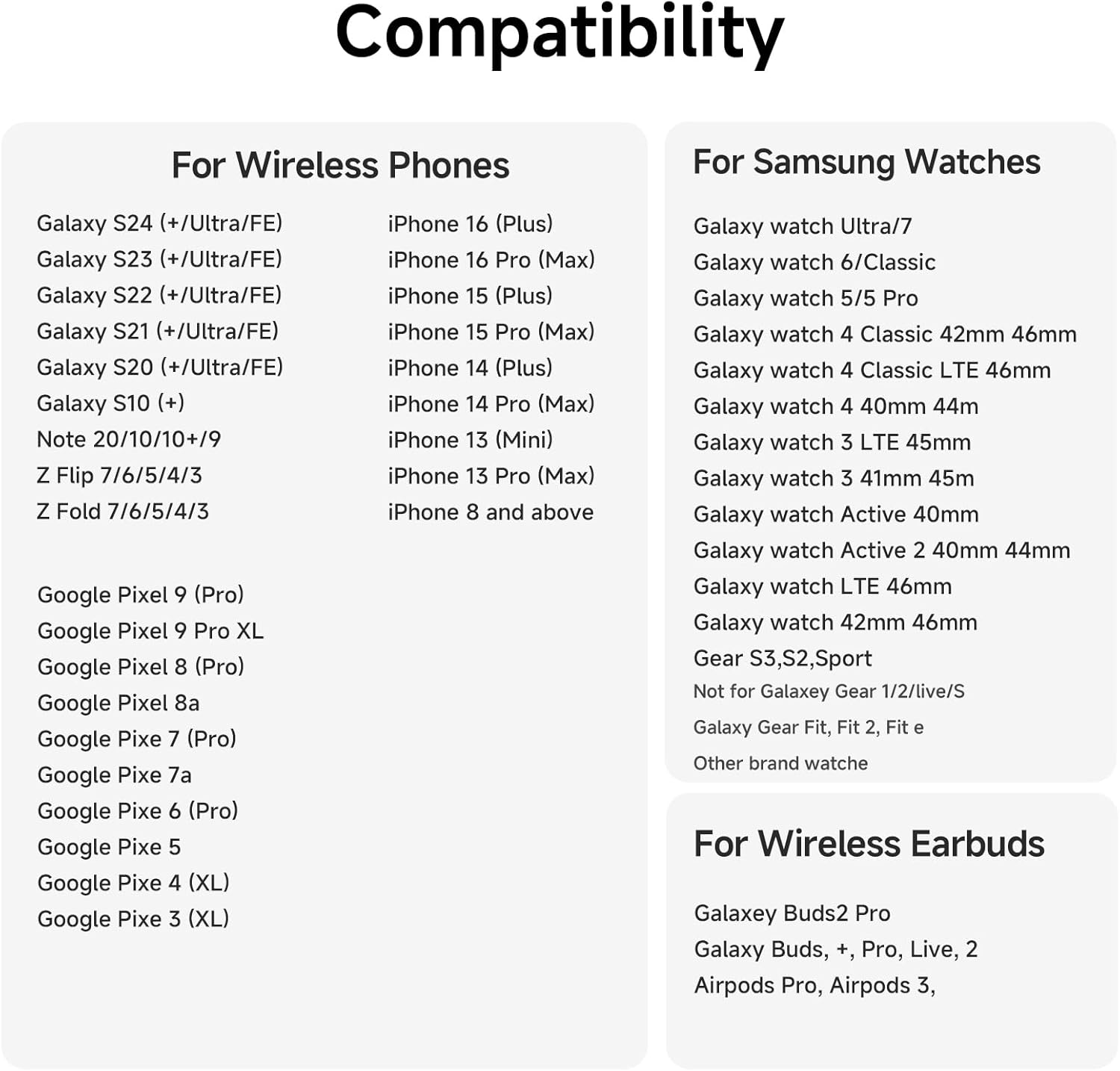 - ⚡【Weitgehend kompatibel mit Drahtlosen Geräten】3 in 1 Wireless Charger für Samsung Geräte: Galaxy Galaxy Z Fold 5/Z Flip 5/S23/S23+/S23 Ultra/Z Fold 3/Z Fold 4/Flip 3/4/S22 Ultra/S22/S21/S21 Plus/S20/S20+/Galaxy S21 FE/S10/S10+, Galaxy Buds /