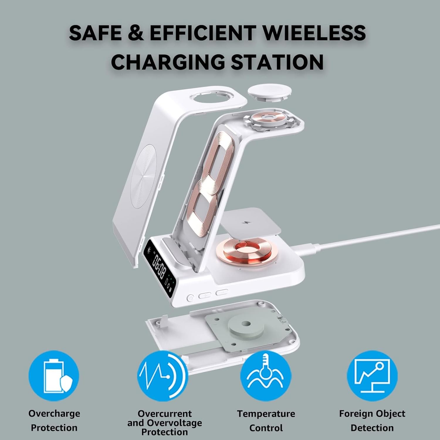- ⚡【Digitaluhr und LED Anzeigedesign】Das einzigartige Design des kabellosen Ladegeräts ist mit einer Digitaluhr ausgestattet. Berühren Sie das Helligkeitssymbol, um die Helligkeit in drei Schritten anzupassen. Wenn es Ihnen nachts zu hell