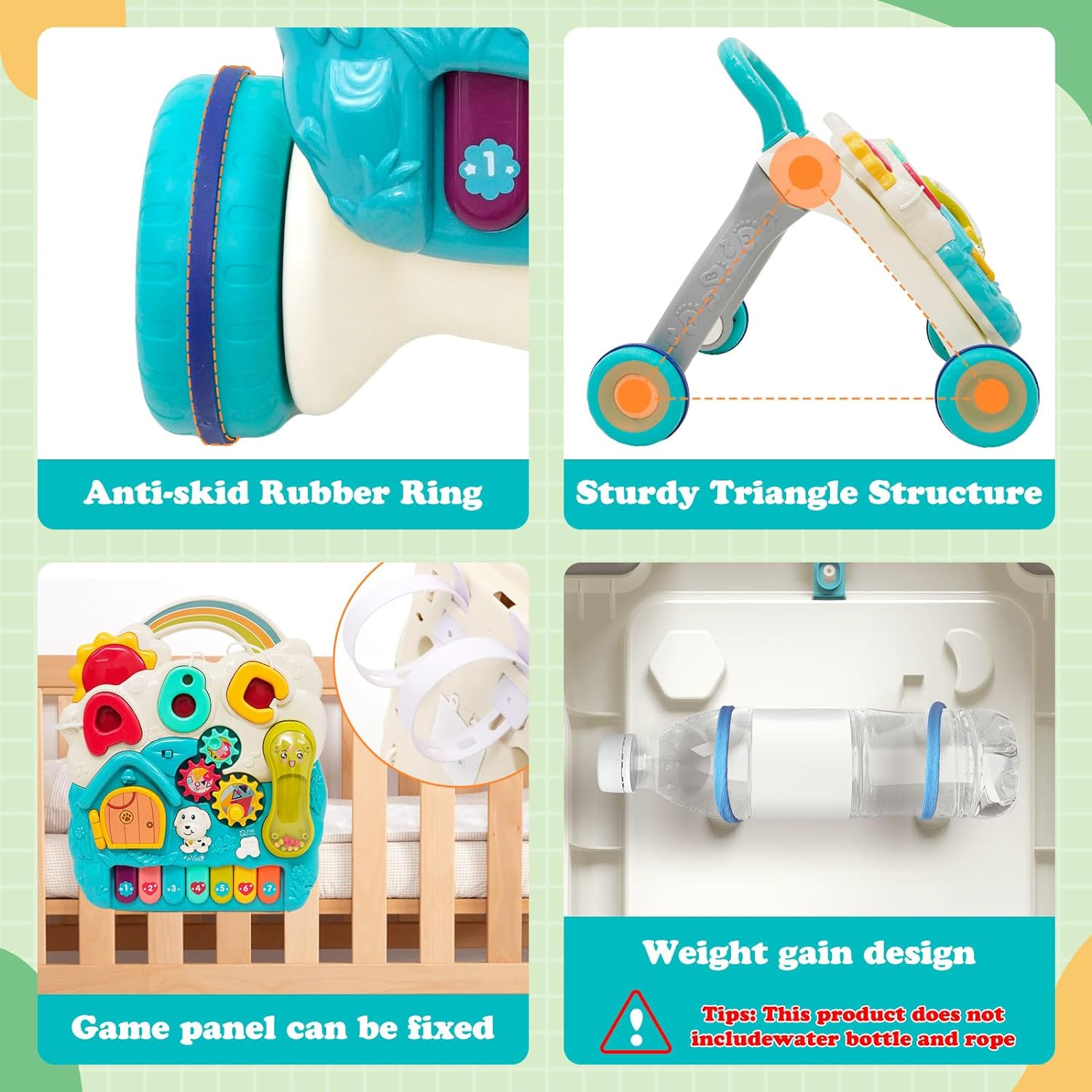 - 【Gewichtszunahme-Design】Wichtig! ! ! Dieser Lauflernwagen kann durch die Befestigung von Wasserflaschen an Gewicht erhöht werden. Sie können das Gewicht des Gehwagens an die Stärke Ihres Babys anpassen und so das Gehen sanfter und sicherer machen.