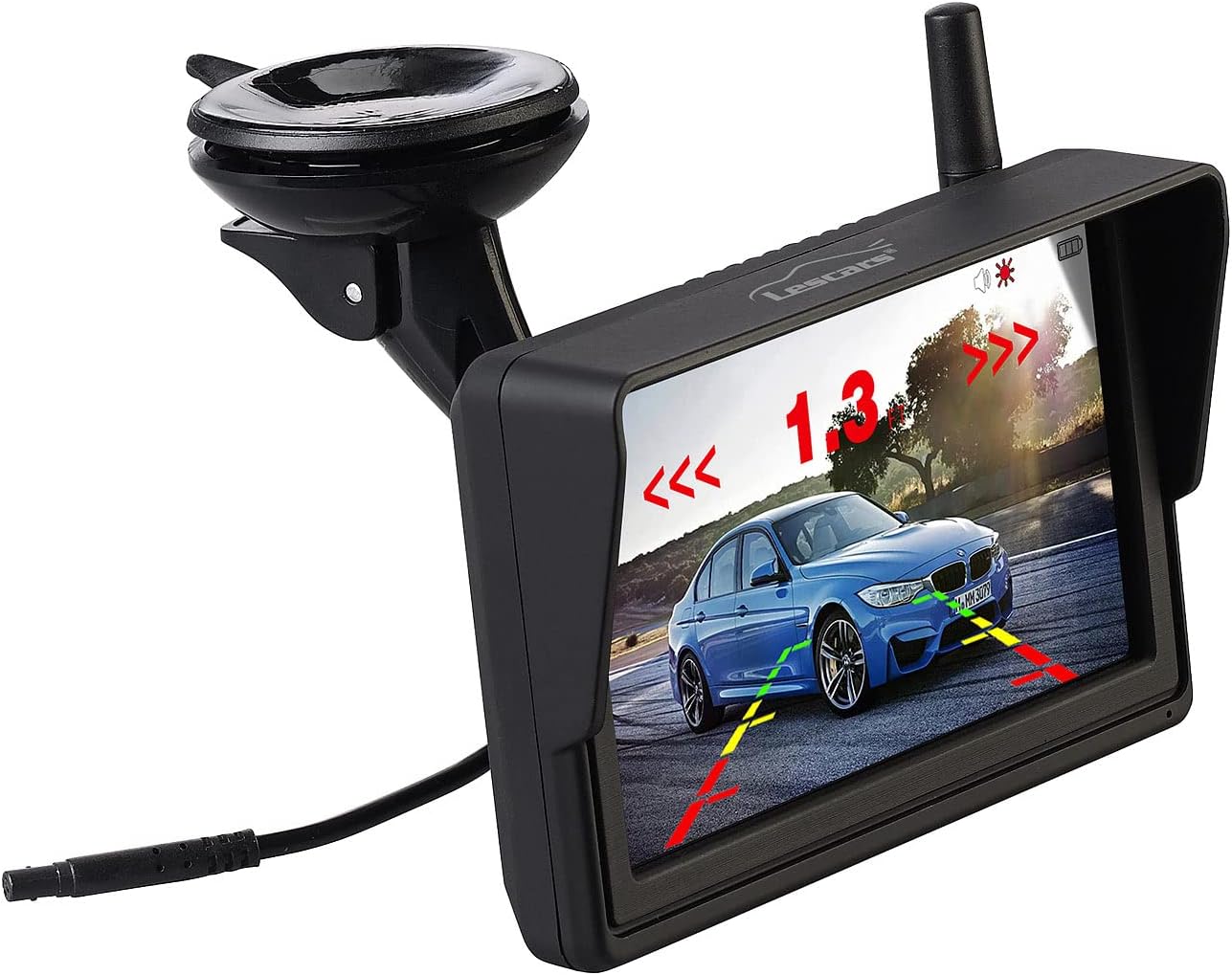 - Ultraschall-Abstandssensoren für akustische Abstands-Warnung • Kamera-Auflösung in HD mit 1280 x 720 Pixeln (720p) • Grosser Farb-Monitor mit 12,7 cm / 5" und automatischer Helligkeitsanpassung • Stromversorgung Kamera und Sensoren per Akku mit