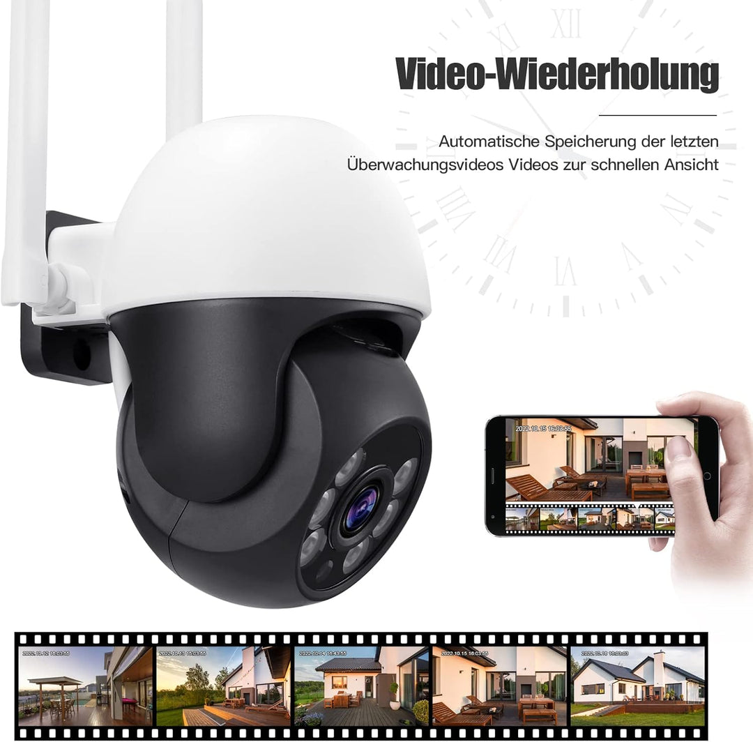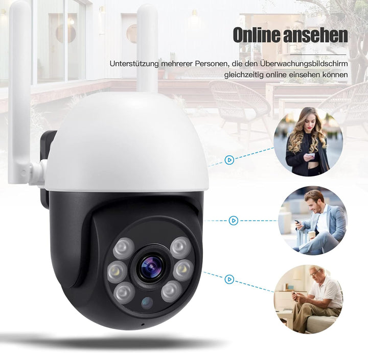 - 【Auto-Tracking und Zwei-Wege-Audio】Diese Überwachungskamera Aussen wlan im Freien hat die Funktion der automatischen Verfolgung der menschlichen Bewegung, informieren Sie über die mehr Aktivitäten der Menschen unter Überwachungskamera und bietet
