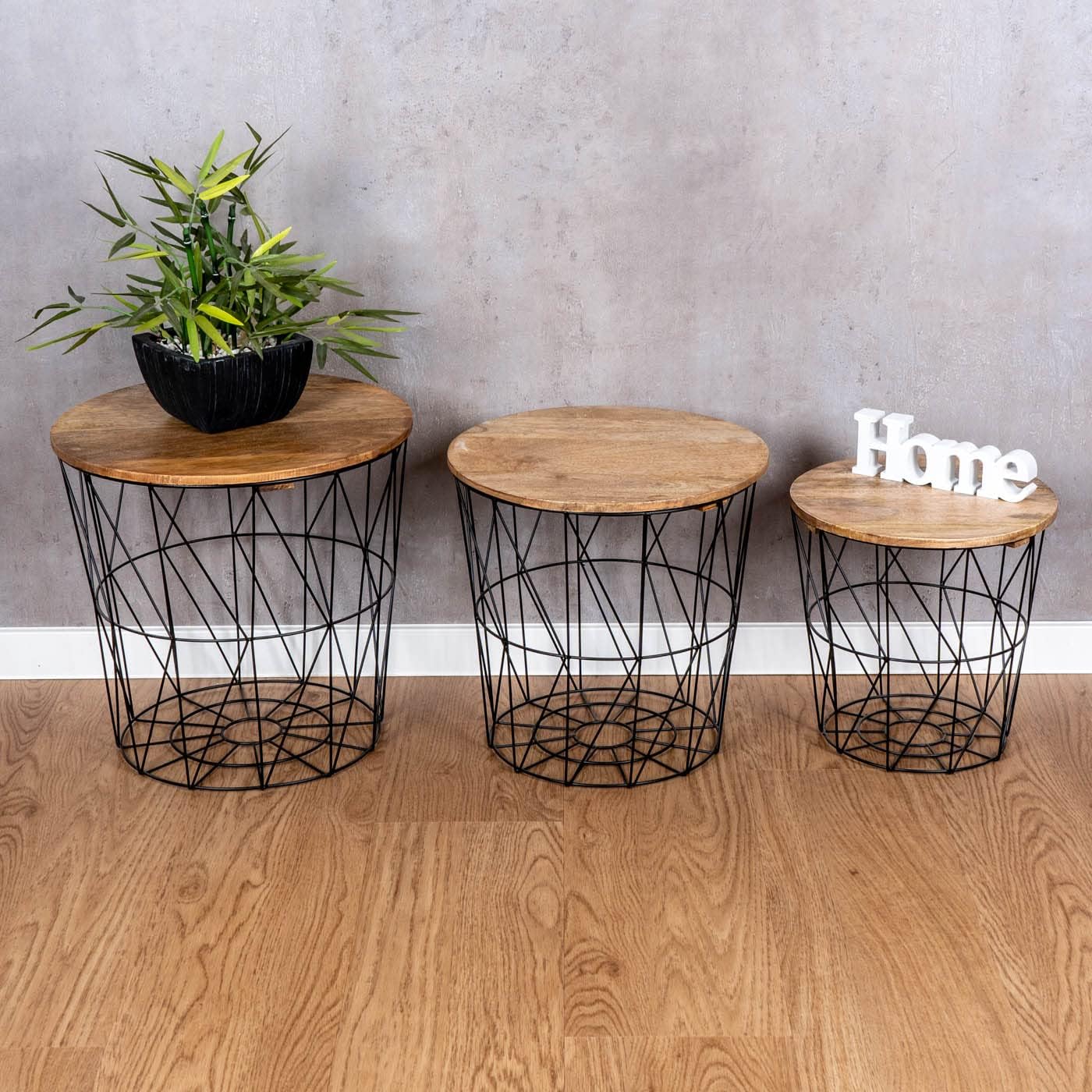 - Drahtkörbe in der Farbe Schwarz mit naturfarbenem Deckel