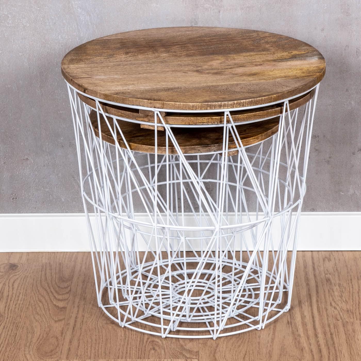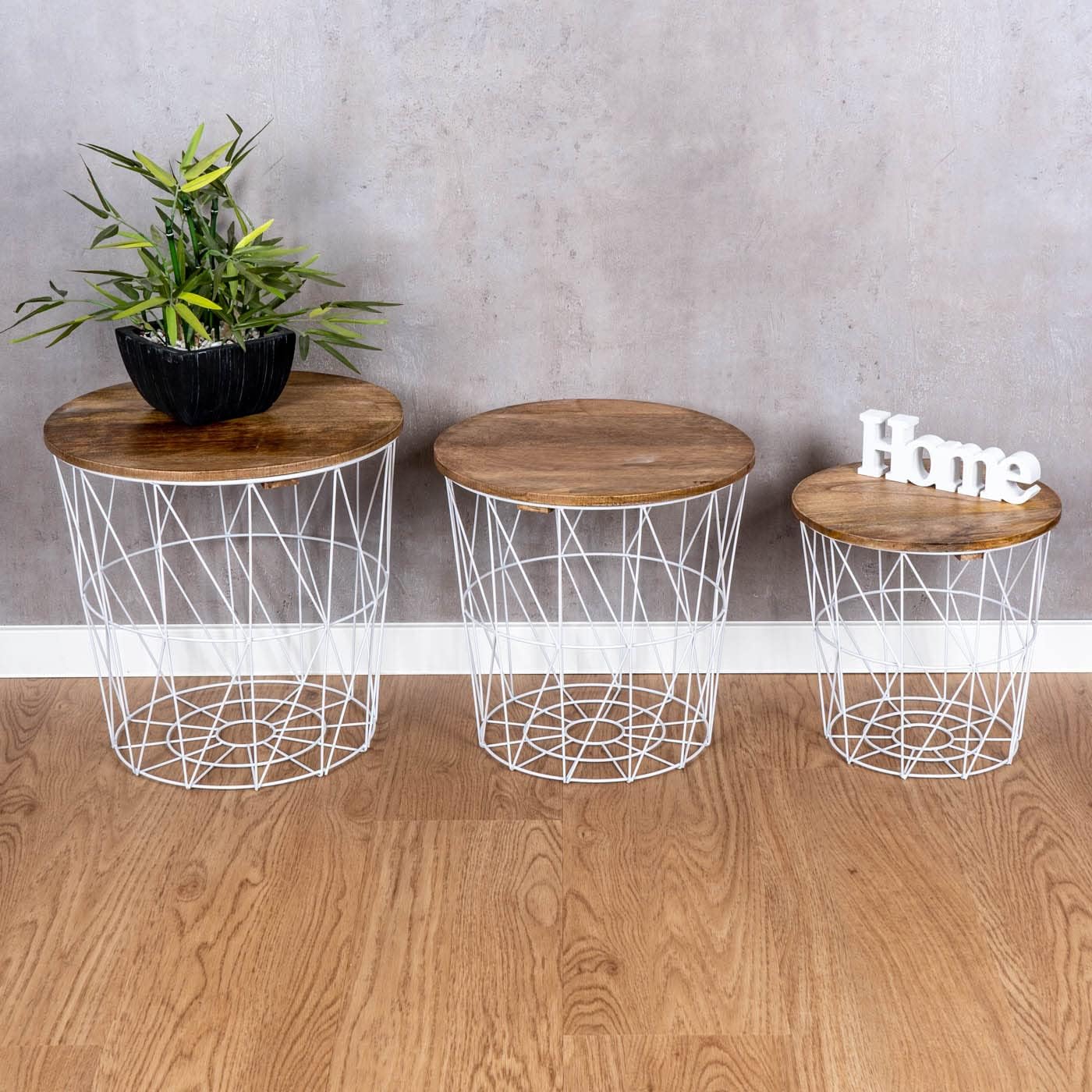 - Drahtkörbe in der Farbe Weiss mit naturfarbenem Deckel