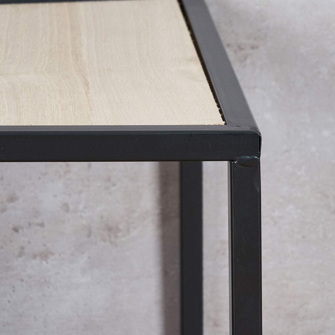 - Metalltische in der Farbe Schwarz mit hellbrauner Tischplatte