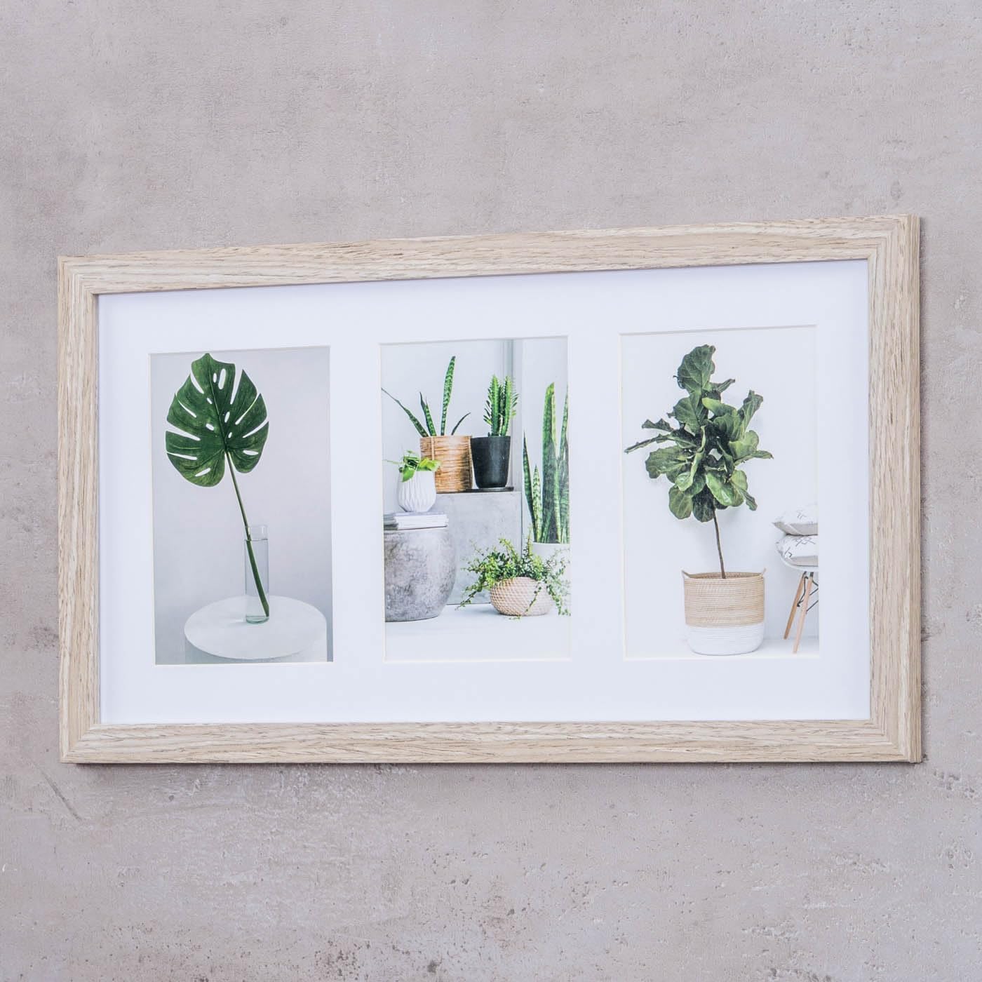 - Lieferumfang: Sie erhalten den abgebildeten Fotorahmen für 3 Fotos in der Farbe Eiche gekälkt (ohne Deko)