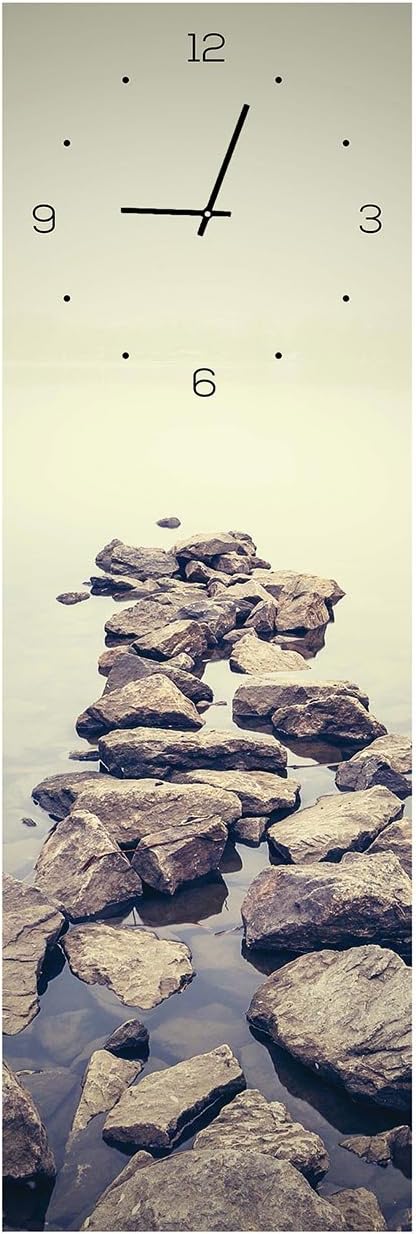 levandeo Wanduhr aus Glas 20x60cm Uhr als Glasbild Steine Meer Natur Dekoration