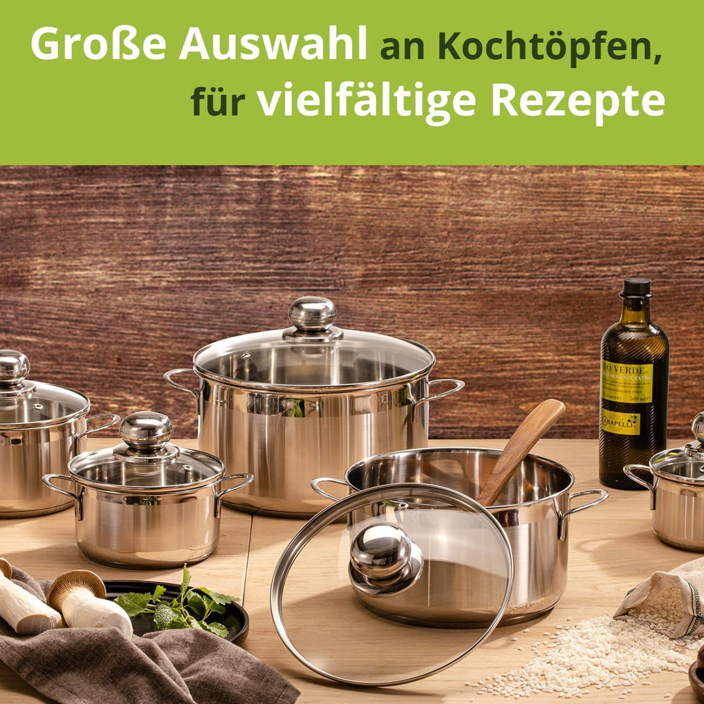 - [Für alle Herdarten geeignet] Die Töpfe können auf allen gängigen Herdarten verwendet werden: Induktionsherde, Gasherde, Elektroherde, Glaskeramik-Herde. Dank der optimalen Wärmeverteilung brennt so schnell nichts an.