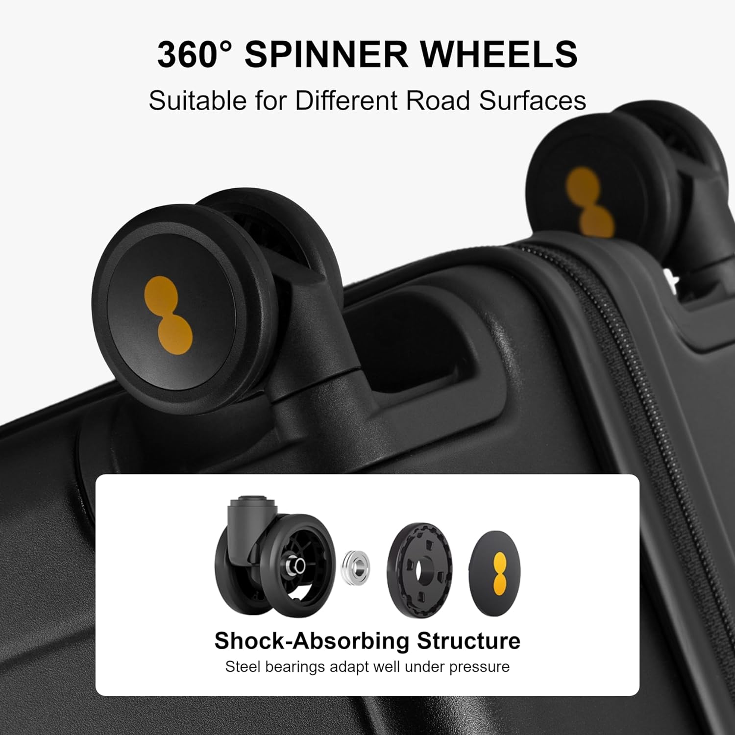 - 【360°Grad Spinner Rollen】Vier mal je zwei 360 Grad Spinner-Räder ermöglichen ein bequemes, aufrechtes Rollen des Koffers in alle Richtungen, ohne das Gewicht auf den Armen lastet.