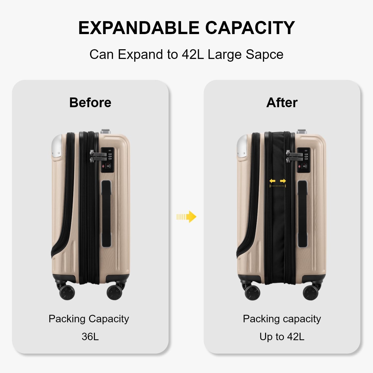• 【Abmessungen】Abmessungen: 55x 37x 25CM (einschliesslich Räder und Griffe). Verlängert eine zusätzliche Breite von 3,5 cm. Gewicht: 5kg. Packkapazität: 36 L bis 42 L. Perfekt für eine kurze Geschäftsreise.