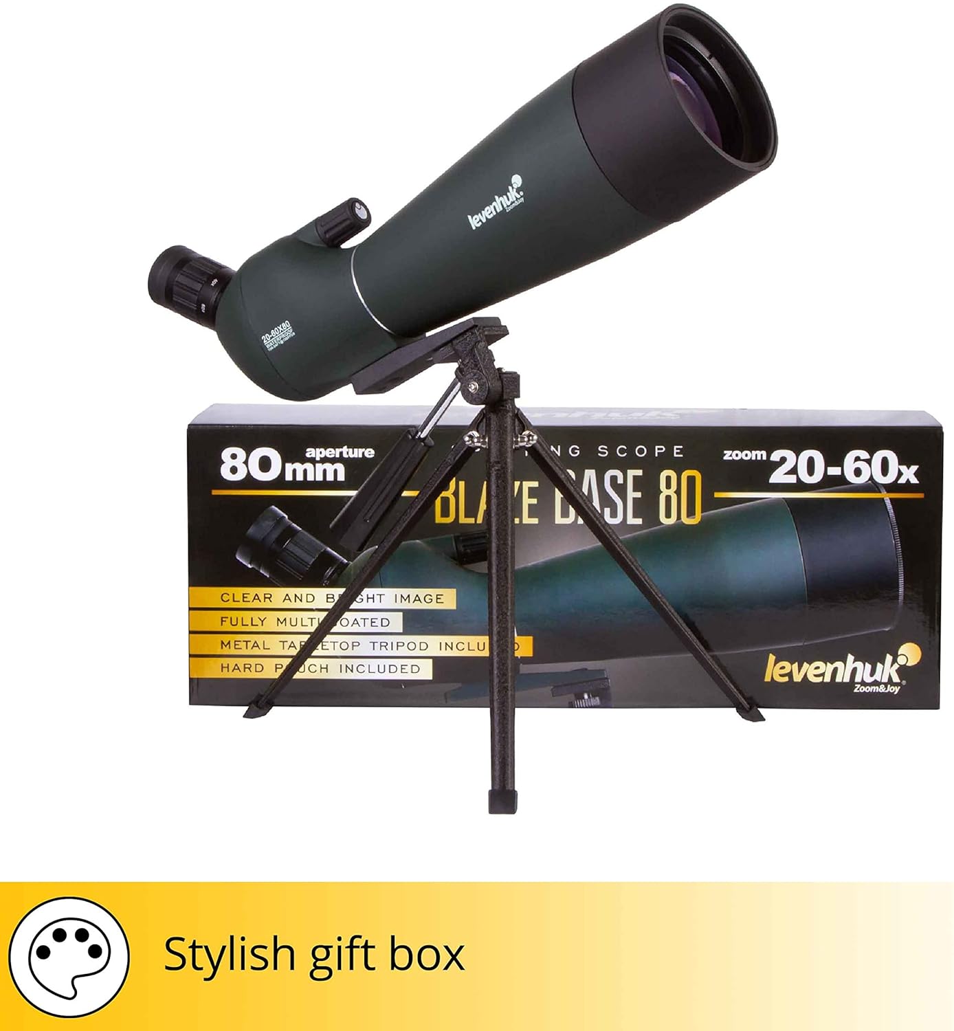 - Das Set enthält ein Tischstativ aus Metall für bequeme, längere stationäre Beobachtungen