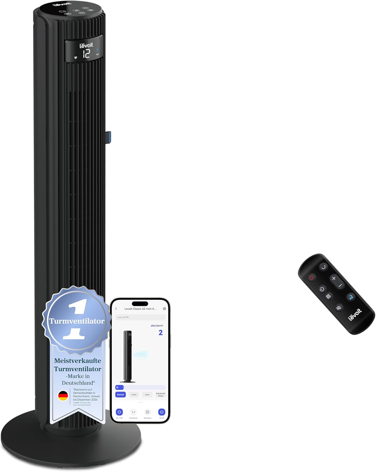- Smarter: Der Classic Pro Smart Tower Fan unterstützt die 4-in-1-Bedienung mit Touch-Tasten, Fernbedienung, APP und Alexa-Sprachsteuerung, was die Steuerung noch bequemer macht