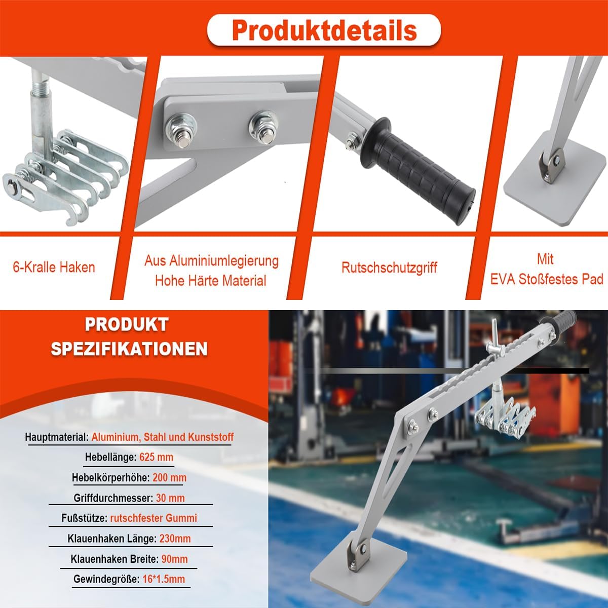 - Breite Anwendung: Die Position der 6 Hakenklaue und des Fusses kann je nach Bedarf frei eingestellt werden. Geeignet zum Punktschweissen von Blechschrumpfreparaturen und zum Ausbeulen. Es wird häufig für die Reparatur von Garagenwagen und ähnlichen
