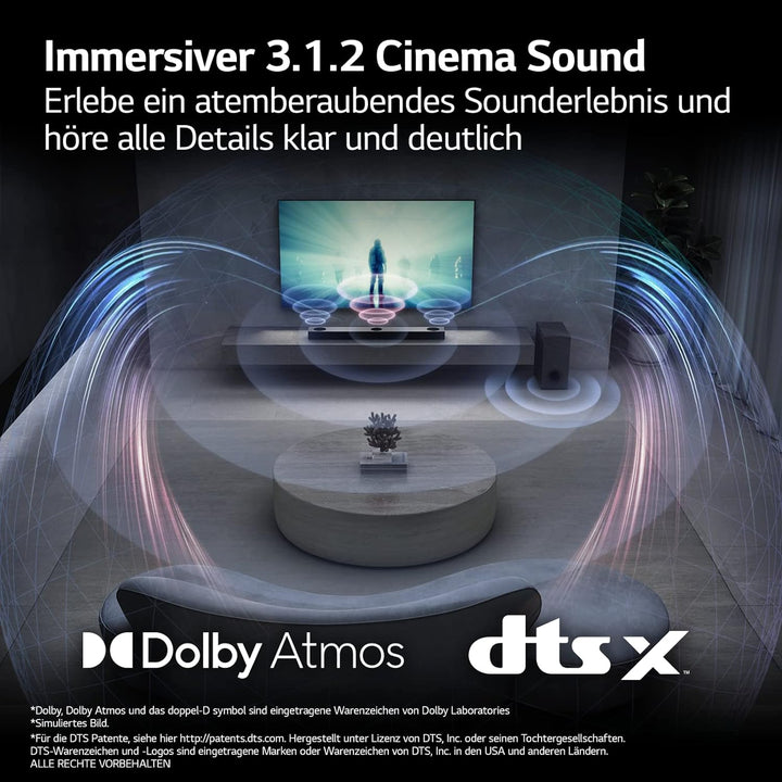 - 3.1.2-Kanal-Soundbar mit kabellosem Subwoofer, Dolby Atmos und High-Res-Audio-Unterstützung