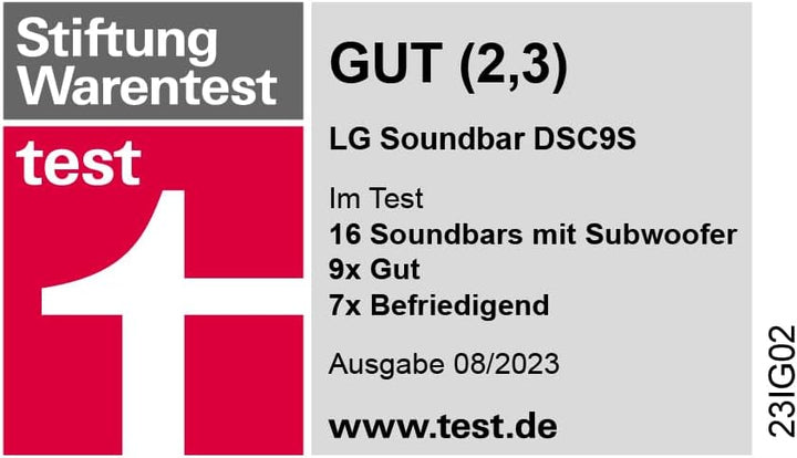 - Leistung: 400 Watt (2x 30 Watt Front, 30 Watt Center, 2x 30 Watt Top, 30 Watt Top Center, 220 Watt Subwoofer); Masse Soundbar: 97,5 x 6,3 x 12,5 cm, Masse Subwoofer: 22,1 x 39 x 31,3 cm