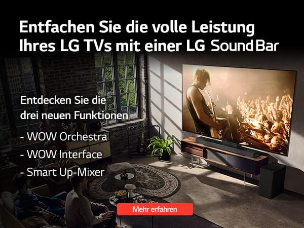 - Konnektivität: LG Sound Sync (optisch), ARC / eARC, 2x HDMI (In & Out, LG SIMPLINK), USB- und optischer Anschluss, Wi-Fi, Bluetooth (v5.0); kompatibel zu Amazon Alexa, Google Assistant, Apple AirPlay 2, Spotify & Tidal Connect; unterstützt WOW