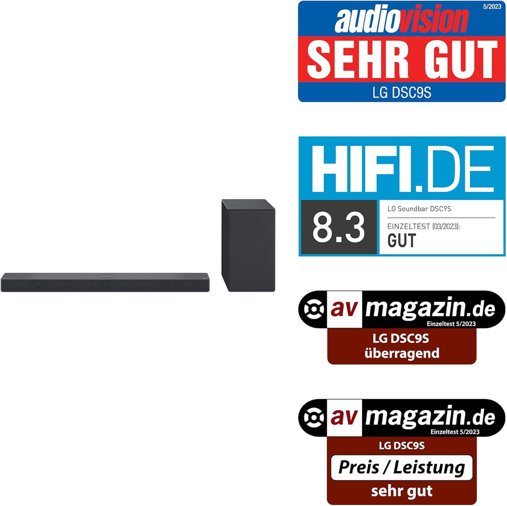 - 3.1.3-Kanal-Soundsystem mit kabellosem Subwoofer, Dolby Atmos und High-Res-Audio-Unterstützung; passt dank integriertem Matching-Kit ideal zur LG OLED evo C-Serie (C2 & C3 in 77", 65" und 55")