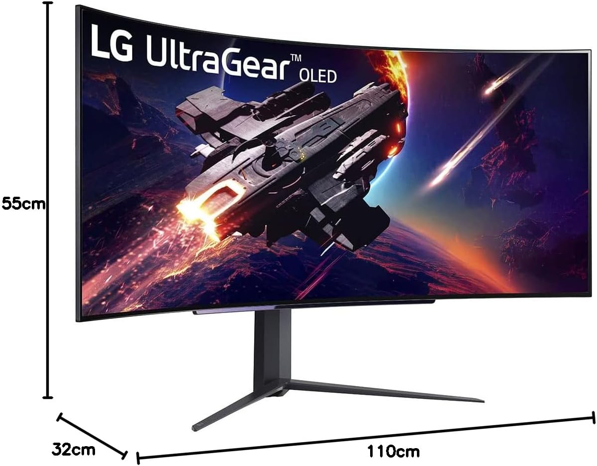 - 45 Zoll OLED-Display mit WQHD-Auflösung (3.440 x 1.440 px), 98,5% DCI-P3 und OLED Pixel Dimming sorgen für eine brillante Farbdarstellung; Bildformat: 21:9