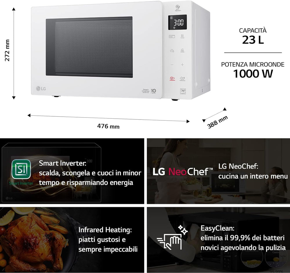 • GESUNDE KÜCHE - Kochen Sie auf natürliche Weise mit den Funktionen Healthy Fry und Healthy Roasting. LG Smart Inverter bietet 72 % mehr Fett für leichte und leckere Rezepte