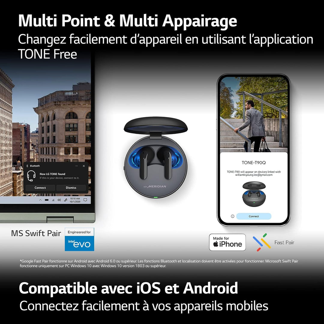 LG Tone Free DT90Q In-Ear Bluetooth Kopfhörer mit Dolby Atmos-Sound, Meridian-Technologie, ANC (Acti