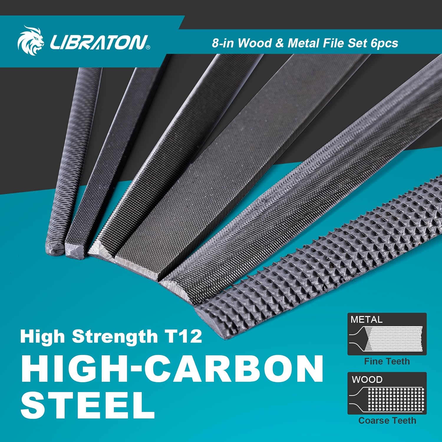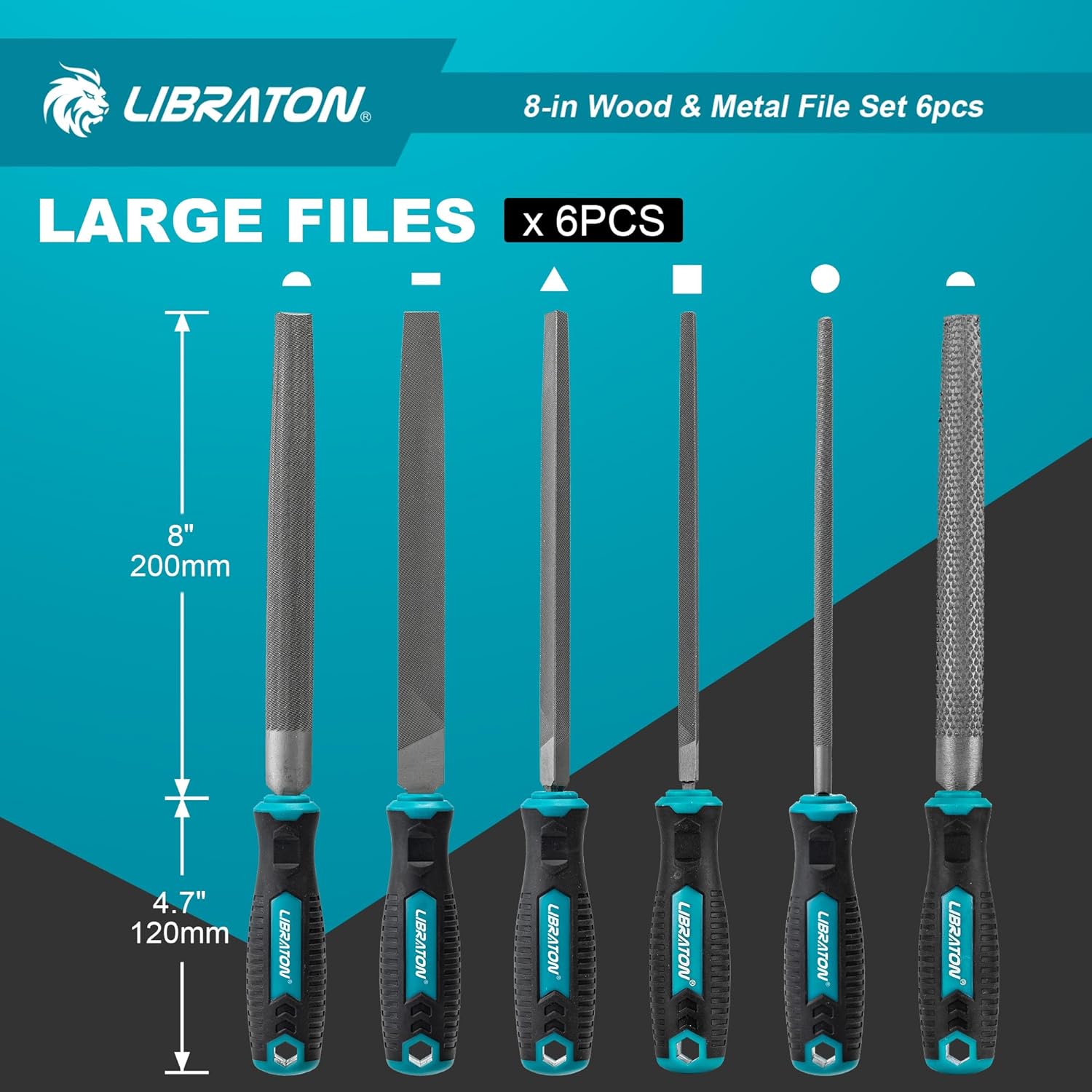 - Optimales Kit: Libraton 200-mm-Feilenset besteht aus 5 Metallfeilen, einer Holzraspel für jede Anwendung und einer Rolltasche. Einschliesslich flacher, runder, dreieckiger, vierkanter und halbrunder Feilen. Die Länge des Feilenkörpers beträgt 200 mm