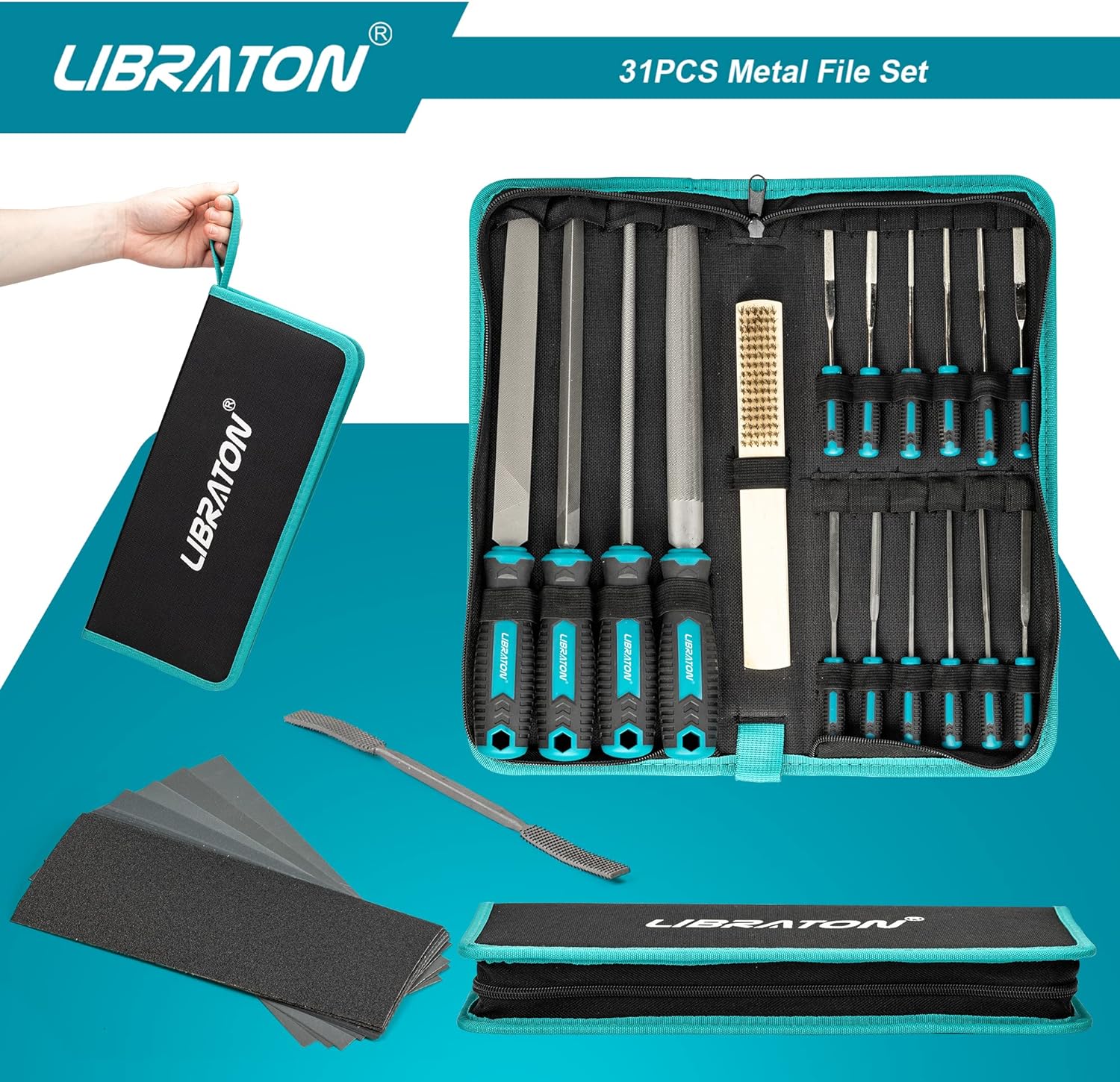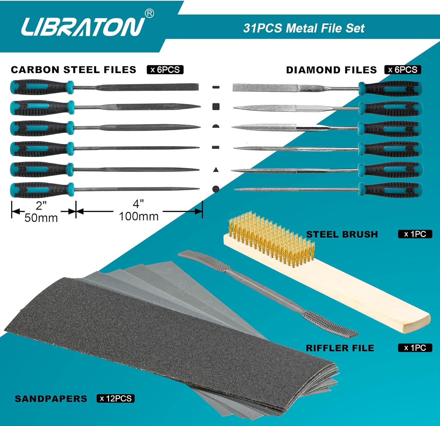 - 31TLG METALL FEILENSET: Libraton feilenset metall set enthält 4tlg 8" Flachfeile, Halbrundfeile, Rundfeile, Dreiecksfeile; 12tlg 4" präzise Nadelfeilen von runden, halbrunden, quadratischen, flachen, flachen Abwehren, Dreieck scharf; 1 Riffelraspeln;