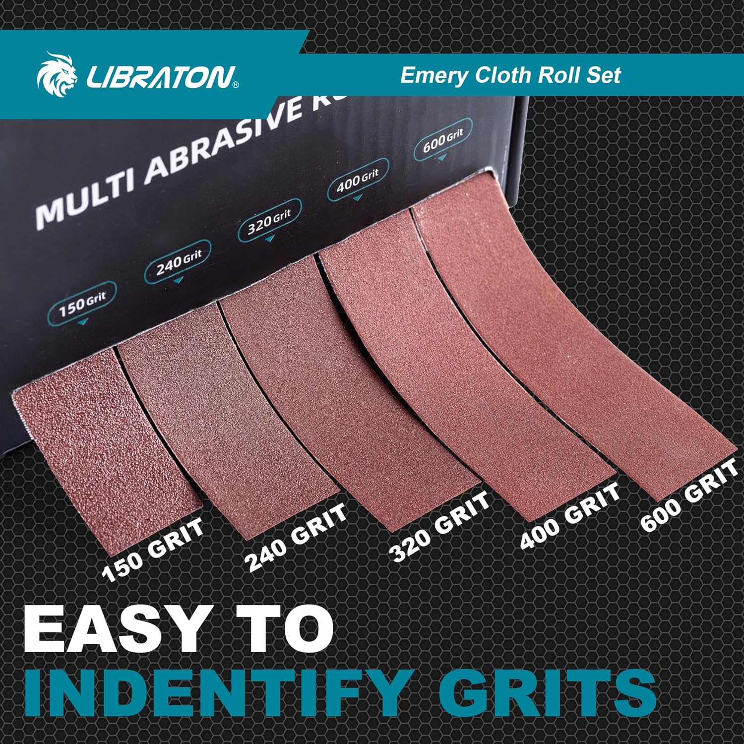 - VIELFÄLTIGE KÖRNUNGEN ERHÄLTLICH: LIBRATON Schmirgelleinen-Set enthält 5 häufig verwendete Schmirgelleinen unterschiedlicher Körnung, von grob bis fein: Körnung 150, Körnung 240, Körnung 320, Körnung 400 und Körnung 600. Jede Rolle