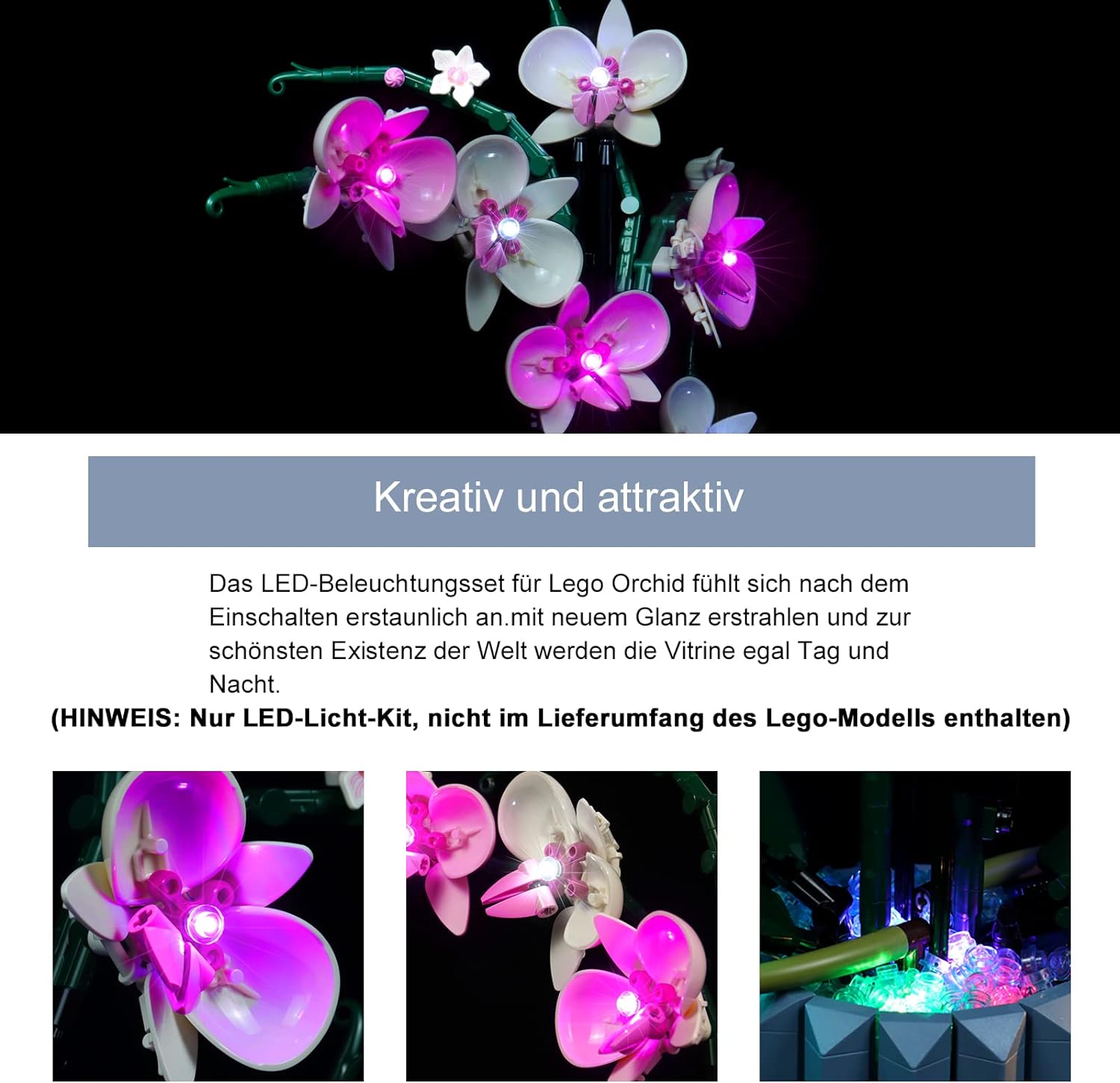 - 【Viel Spass beim Selbermachen】 Unser LED-Lichterset für LEGO Orchideen bietet eine helle Beleuchtung, damit Sie sich von Ihrem geschäftigen Leben erholen und Ihre schöne Nacht wiedererlangen können. LEGO ist eine Marke der LEGO Gruppe. Alle