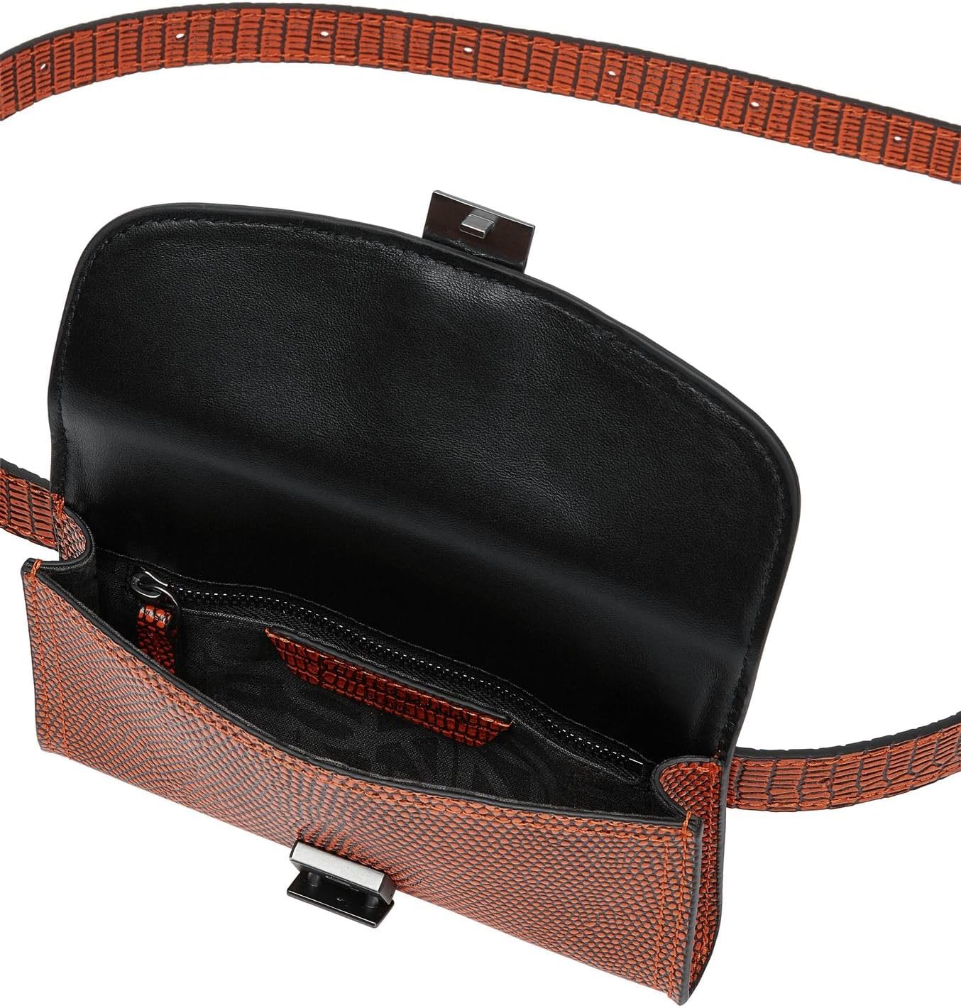 PRODUKTBESCHREIBUNGEN Rindsleder mit hochwertiger Prägung und Print in Reptilhautoptik sowie schwarz abgesetzten Kanten, aufklappbares Hauptfach; Überschlag mit besonderem Liebeskind-Metallverschluss, Innenraum mit Steckfach und kleinem Reissverschlussfach, Rückseite mit Logoprägung, Vorderseite mit Logoprägung, verstellbarer und abnehmbarer Lederschultergurt
